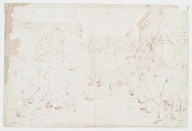 matita nera, penna, inchiostro bruno e acquerello su carta