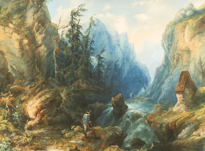 Paesaggio con fiume e montagne
