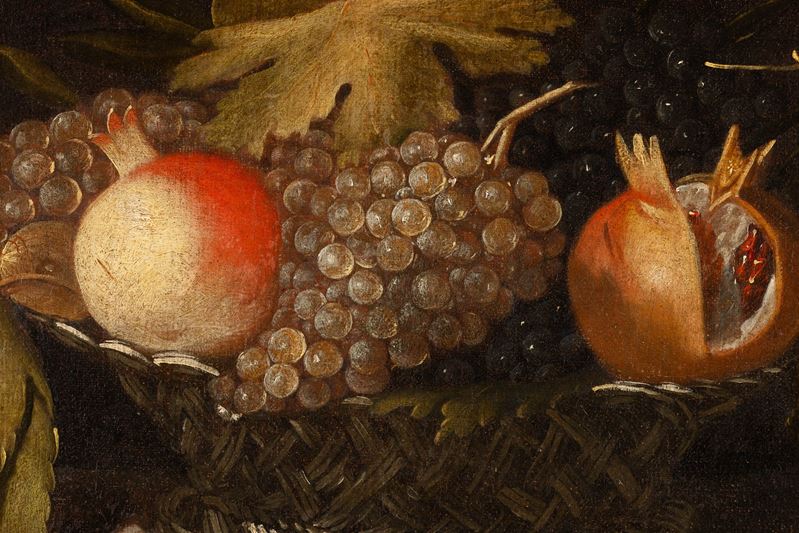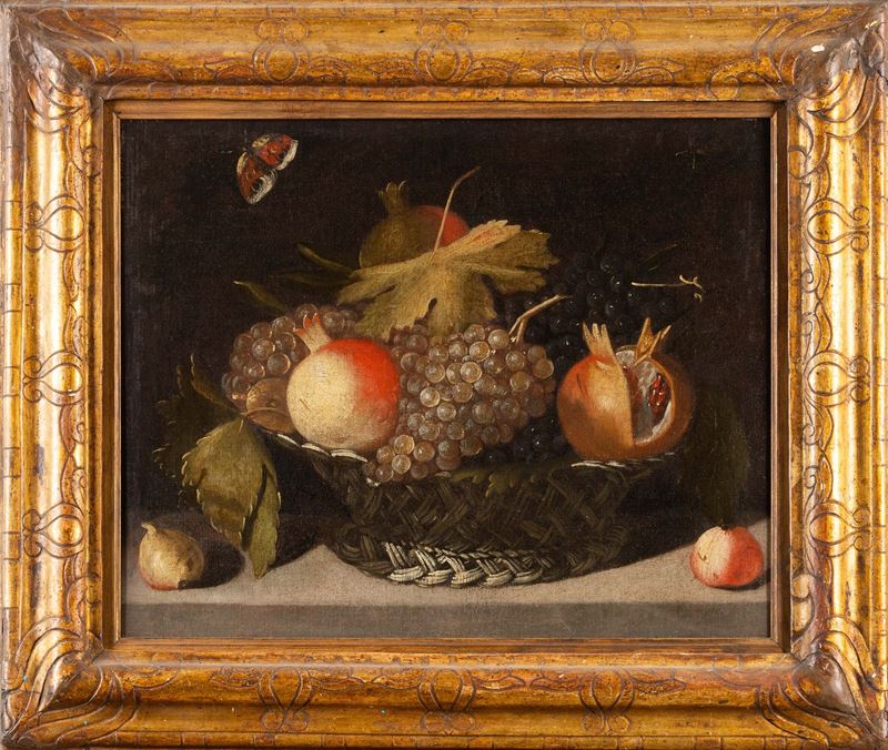 Scuola lombarda del XVI secolo Natura morta con cesto di frutti