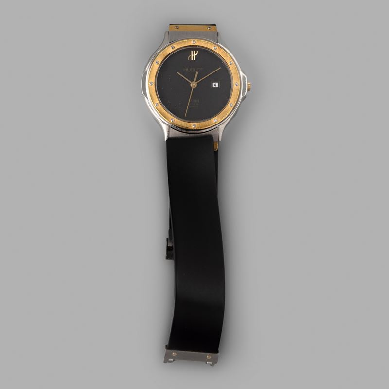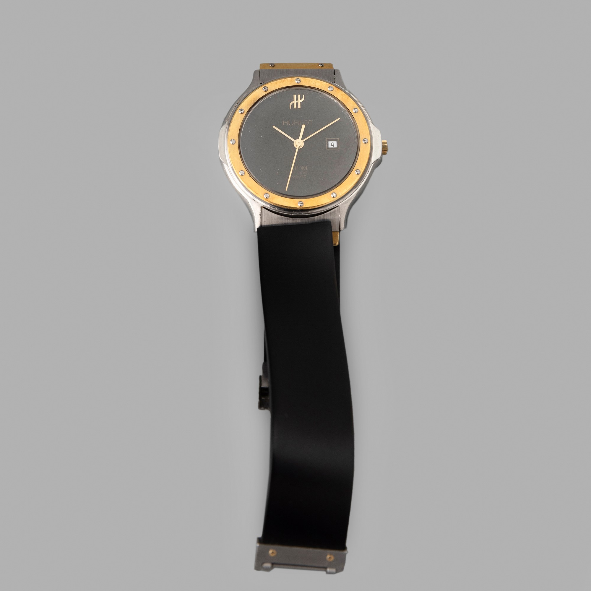 Hublot MDM Lady acciaio e oro al quarzo, quadrante nero con datario, cinturino in gomma 30 mm