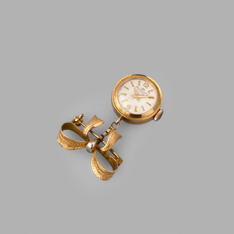 Pryngeps elegante orologio spilla da signora in oro giallo 18k, 17 mm