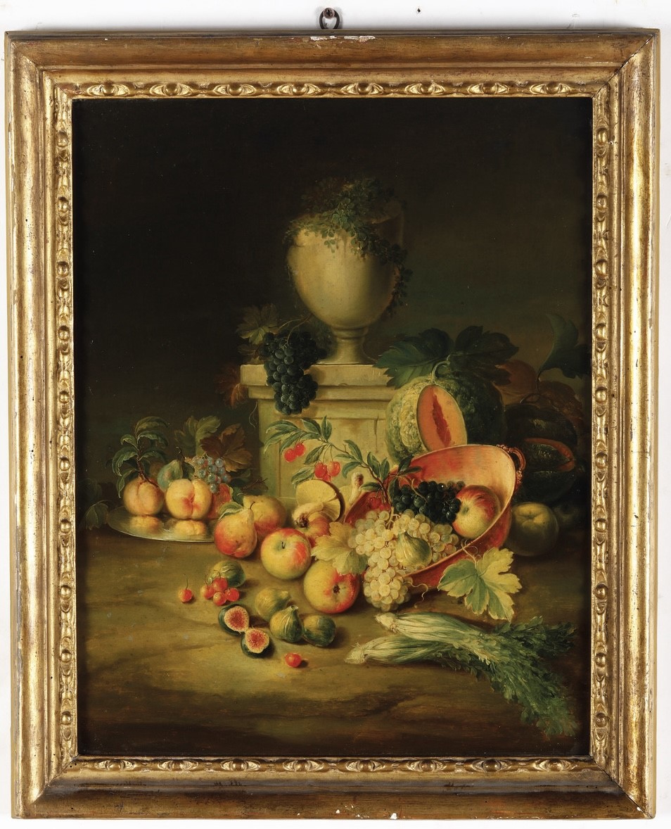 Scuola del XIX secolo Nature morte con trionfi di frutti