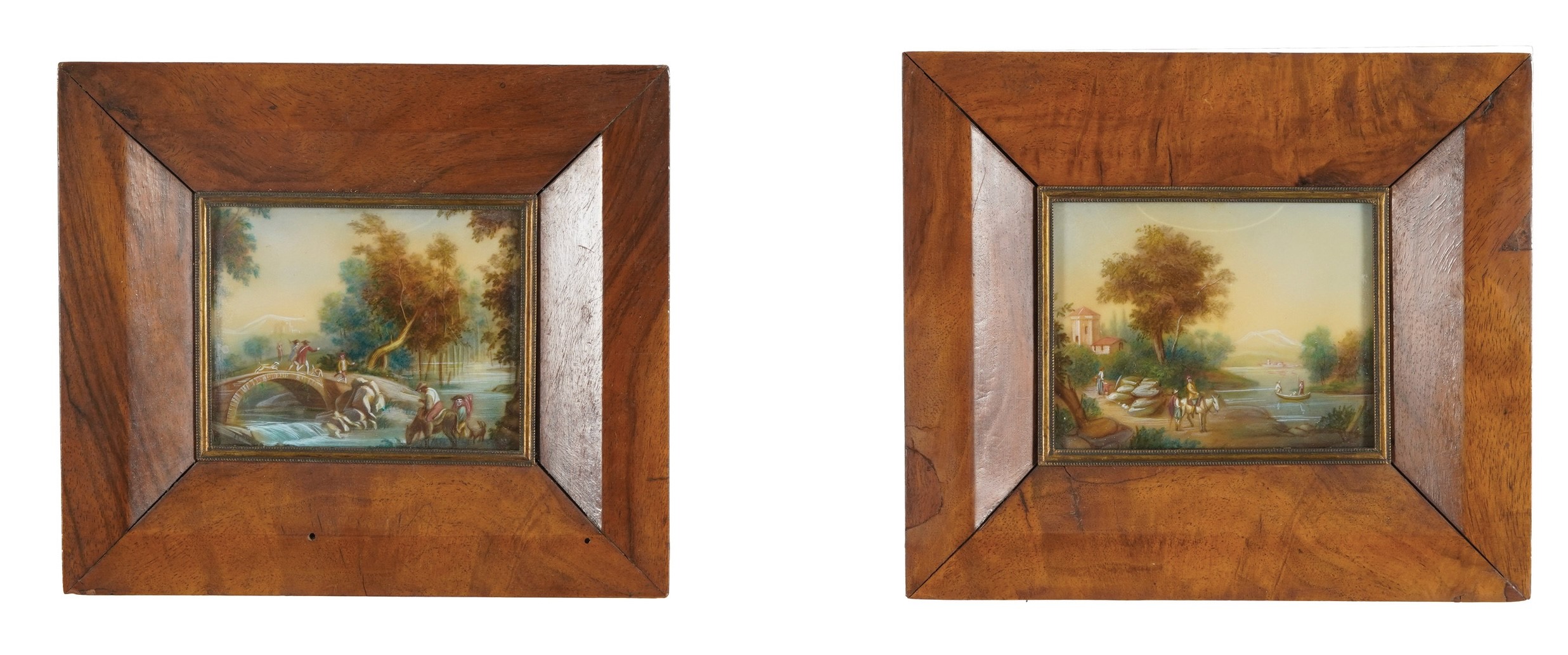Scuola del XIX secolo Paesaggi fluviali con figure