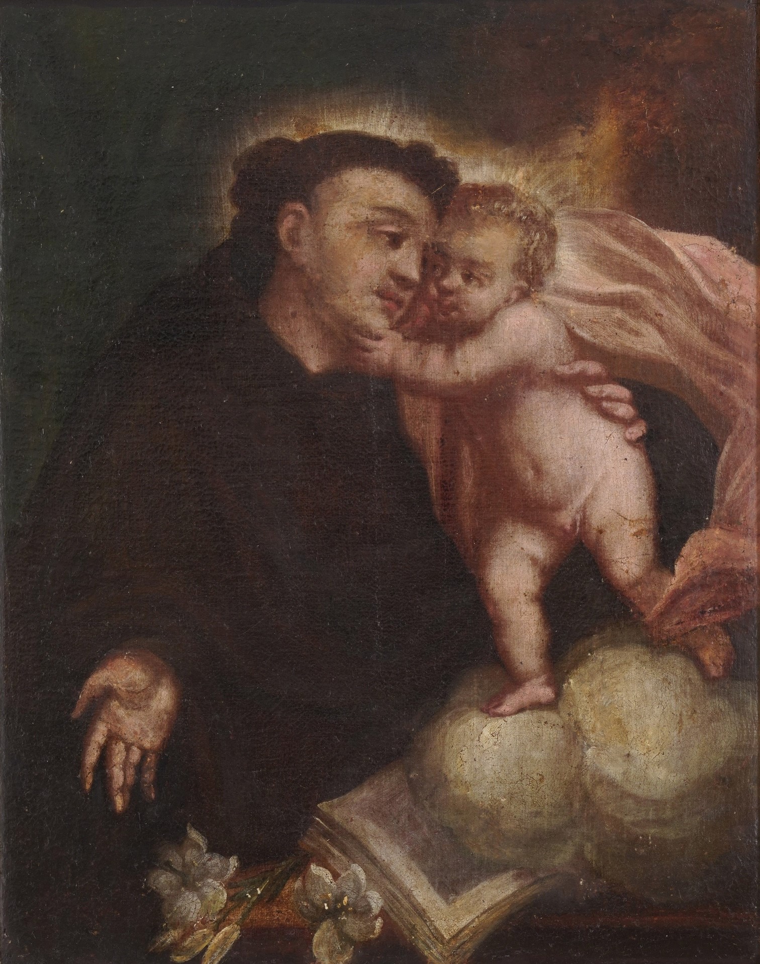 Scuola del XVII secolo Sant’Antonio da Padova con il Bambino