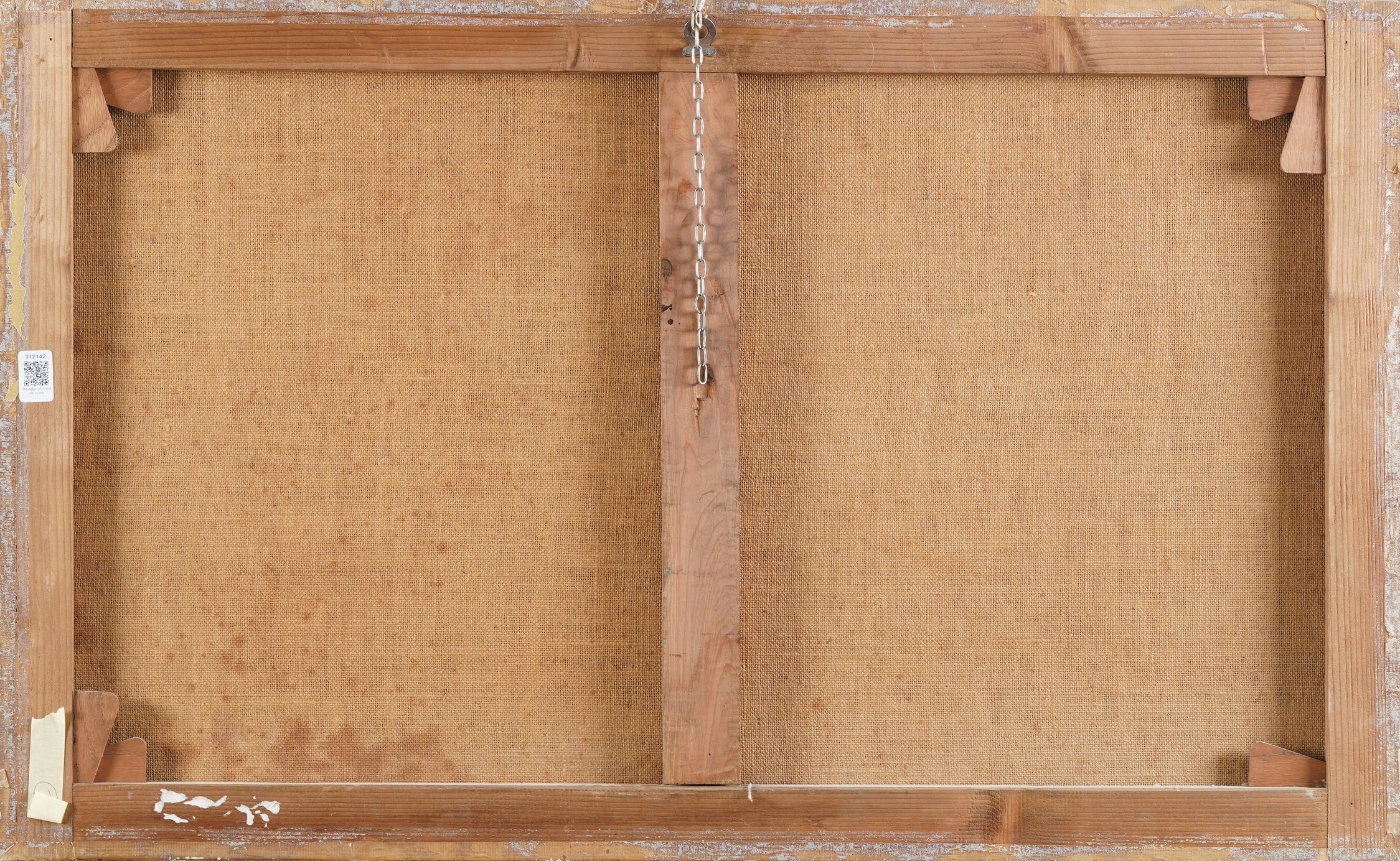 Scuola del XVIII secolo Paesaggio fluviale con figure e architetture sulla sfondo