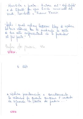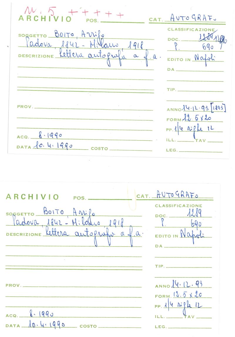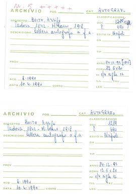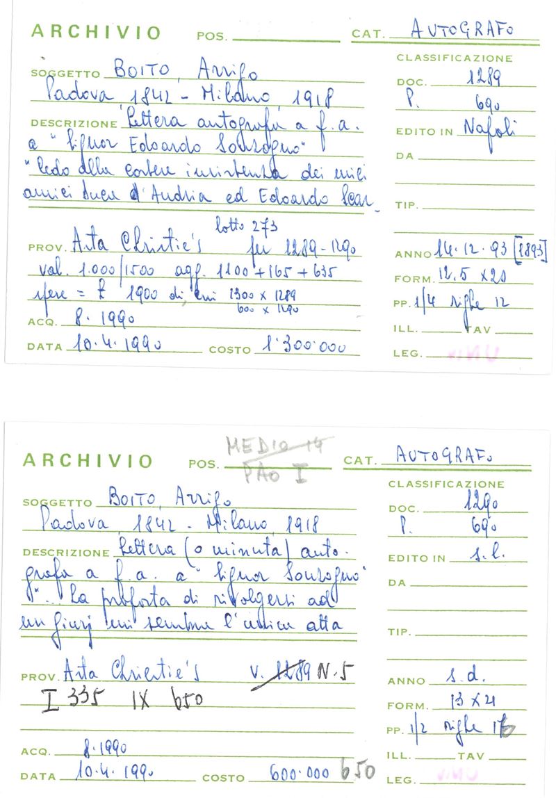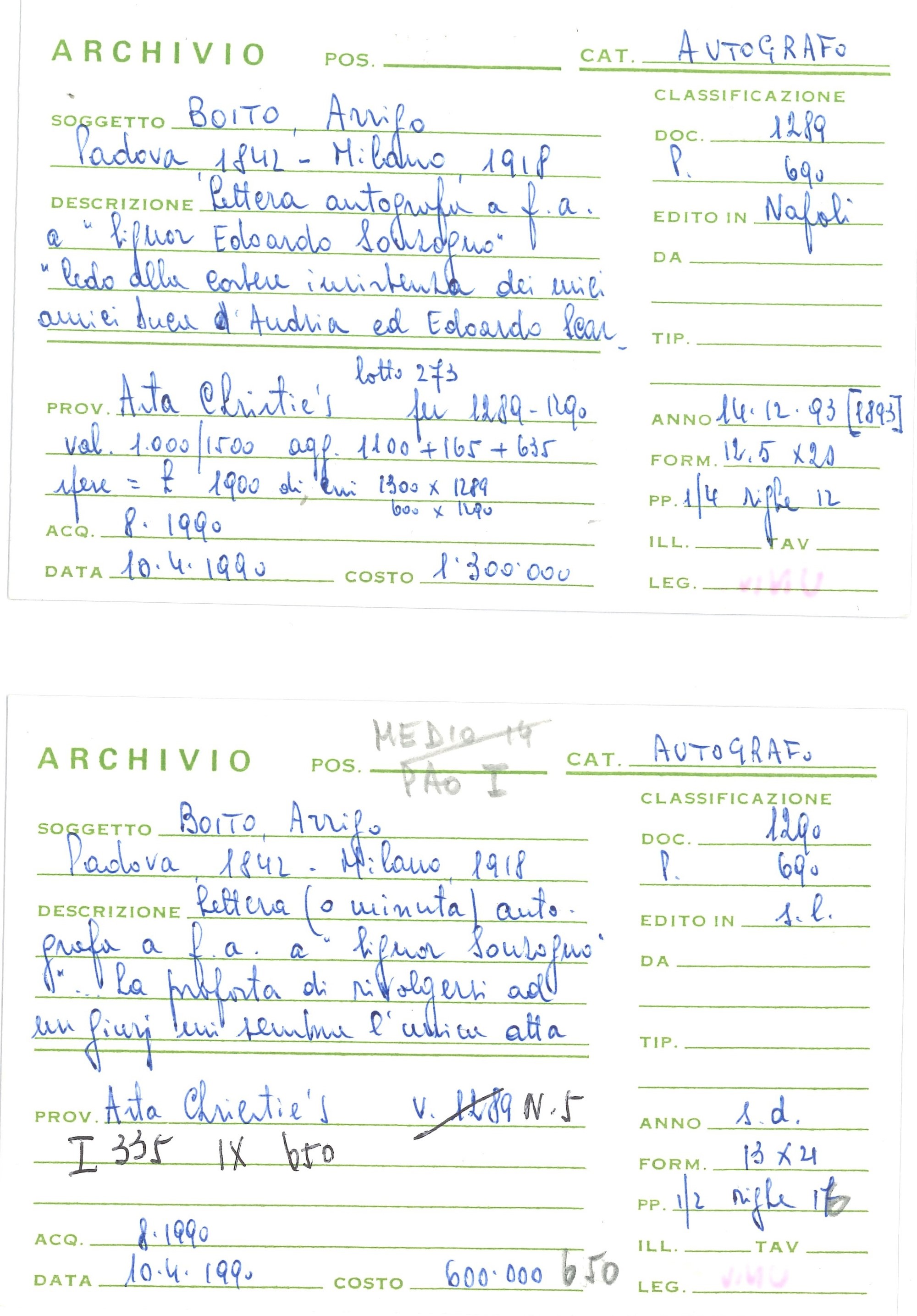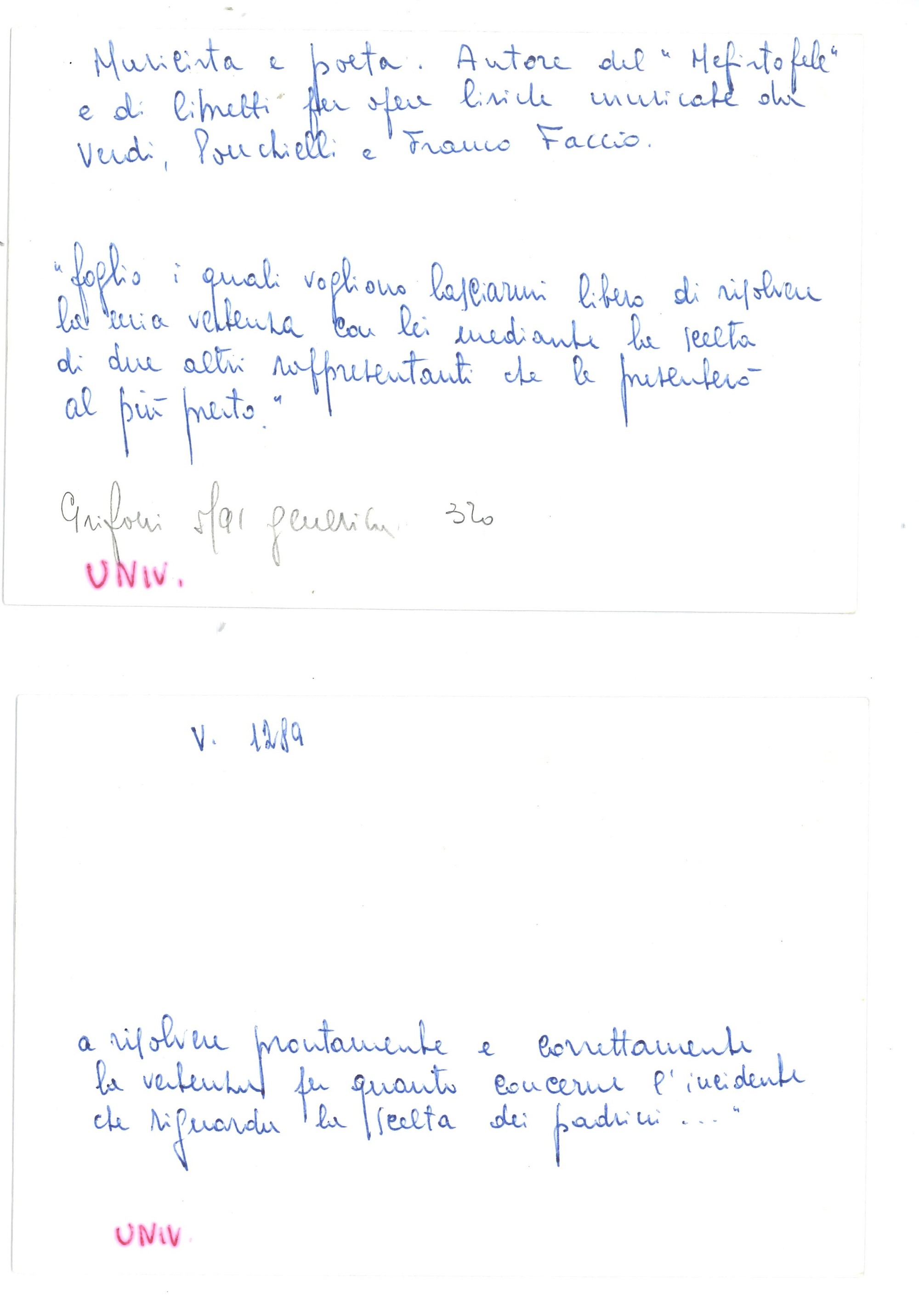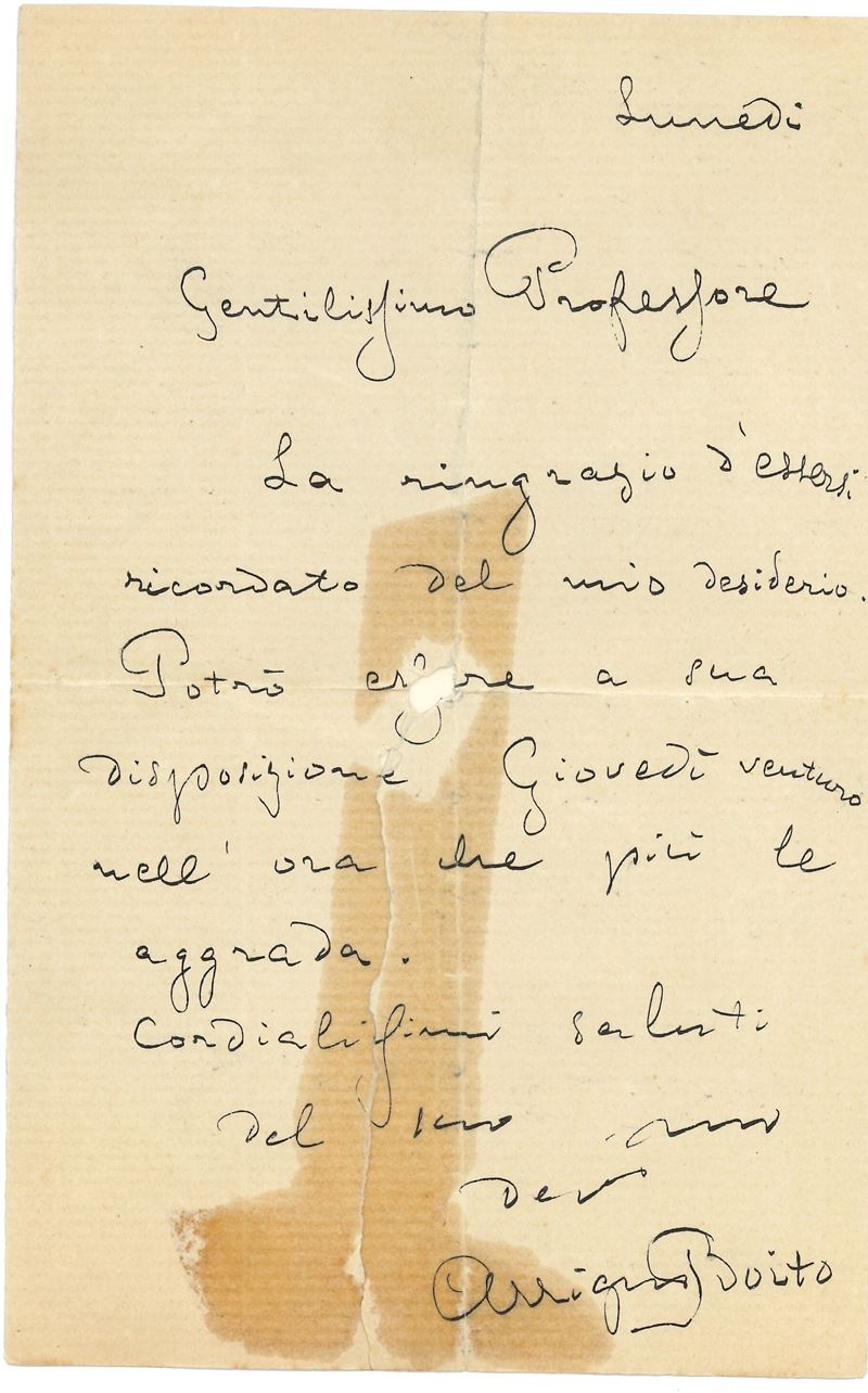 Boito Arrigo (1842-1918) Due lettere indirizzate a Edoardo Sonzogno e una a non meglio identificato "Professore"