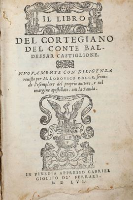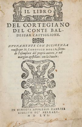Il libro del cortigiano... nuovamente con diligenza rivisto con M. Lodovico Dolce... In Vinegia, appresso Gabriel Giolitto De Ferrari, 1556