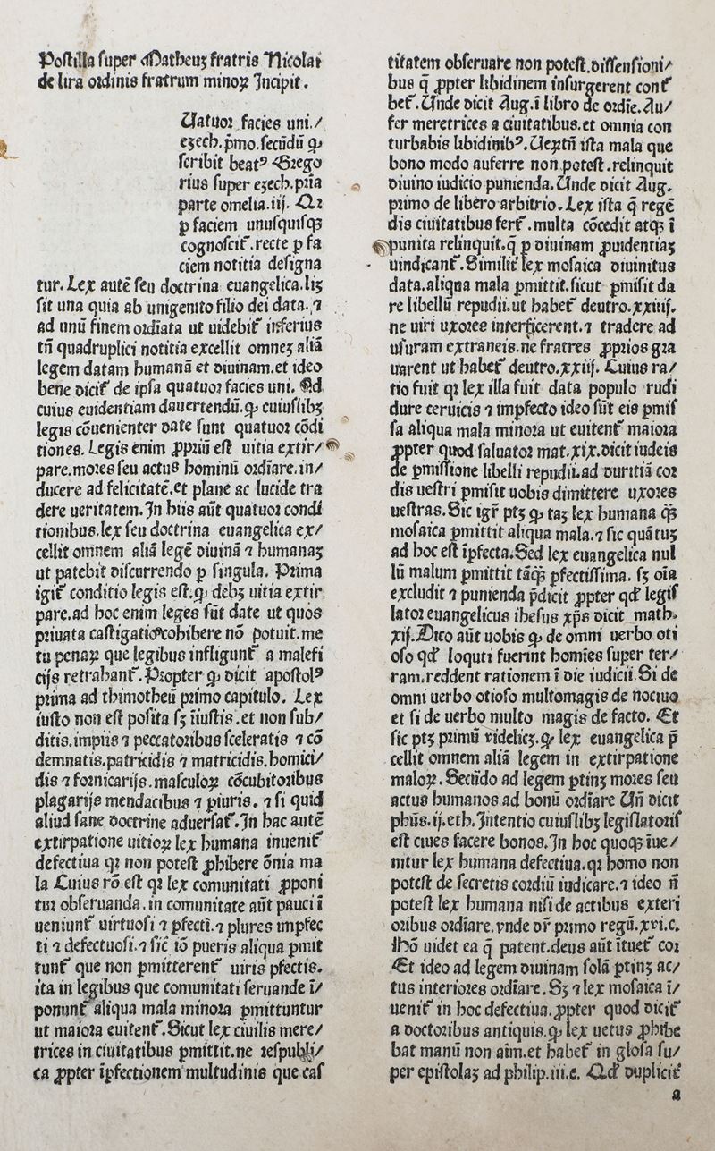 De Lyra Nicolai (1270-1349) Postilla super quatuor evangeljs cum additionibus... Mantova, Paulum Johannis de Puzpach, 147 [..]