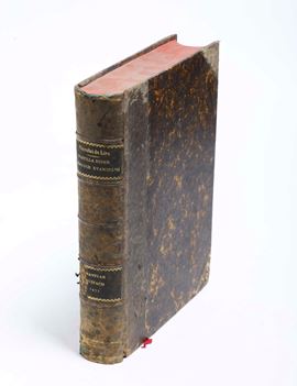 In-folio (cm 29,2x19,7). [244] cc. Rilegatura marmorizzata in mezza pelle e punte del XIX secolo, taglia rossi, ex-libris nobiliare al contropiatto ed ex libris a timbro non identificato alla prima e all'ultima carta bianca. Abrasioni e difetti alla legatura. Testo su due colonne. Esemplare fresco e marginoso con solo una gora molto marginale nelle prime carte e alcuni fori di tarlo.