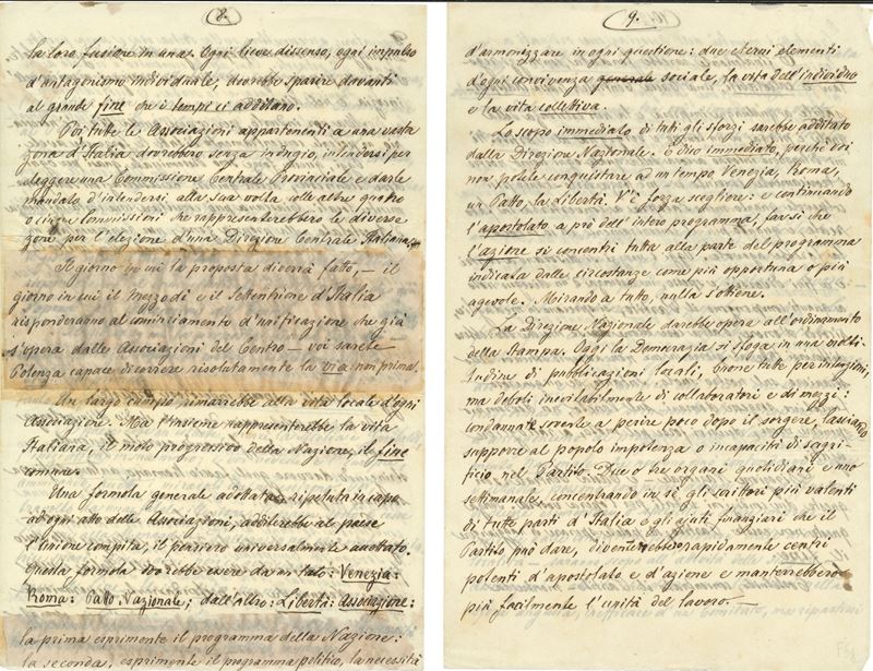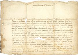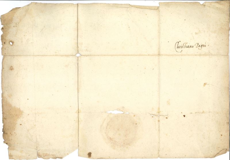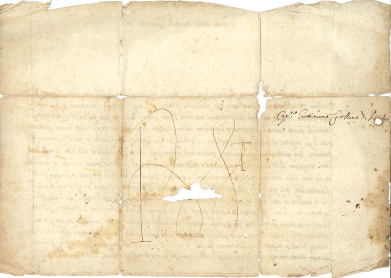 Documento autografo. Due fogli: uno bianco con traccia di sigillo in ceralacca e uno manoscritto. (difetti e mancanze)
