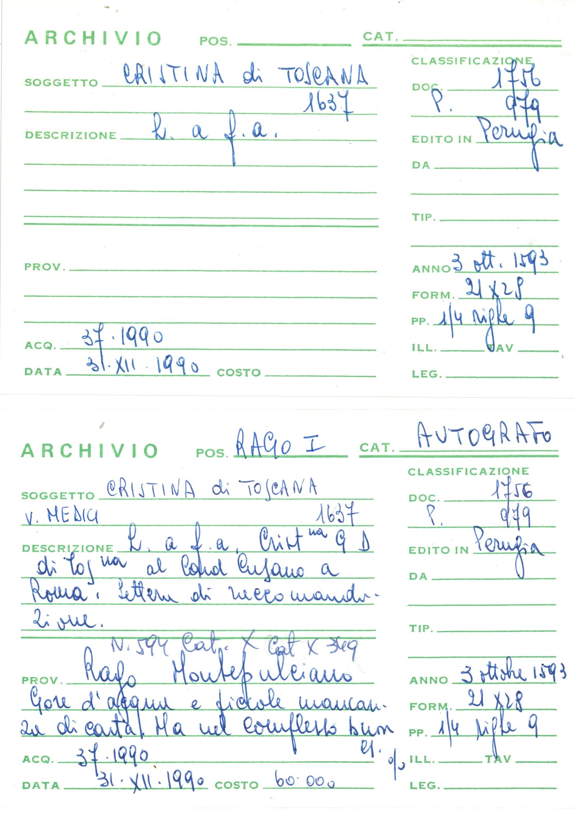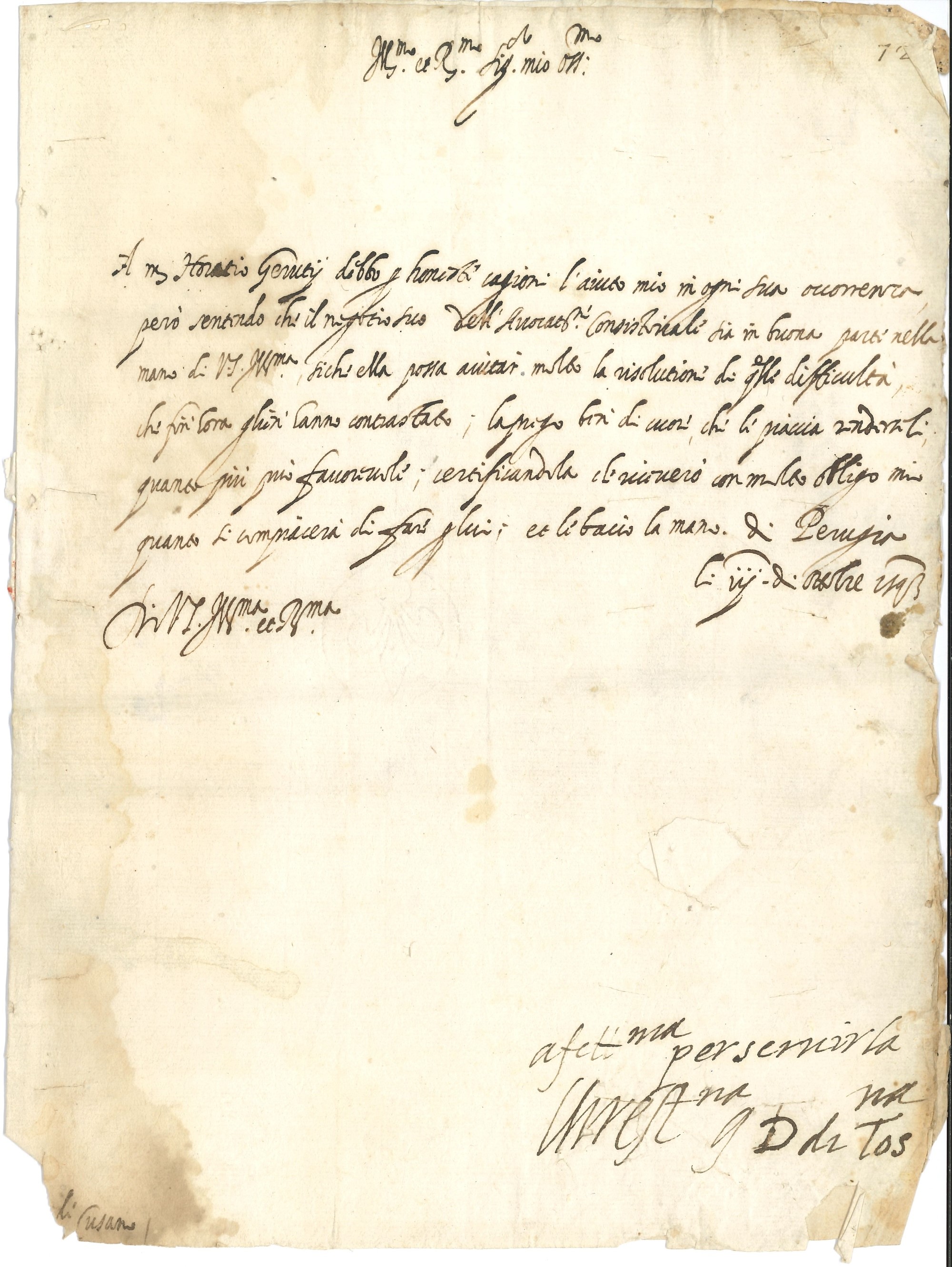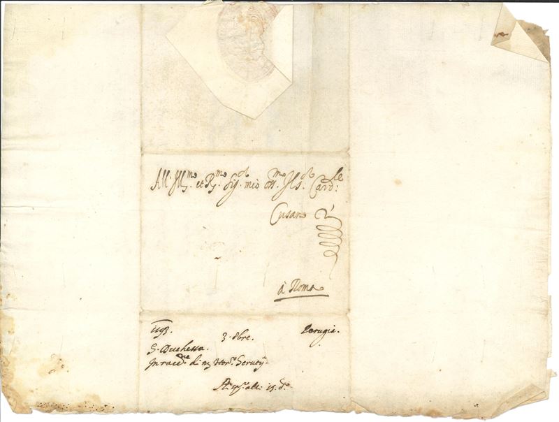 Lettera autografa di raccomandazione al Cardinal Cusano. Presenza di sigillo a secco con stemma Medici-Lorena