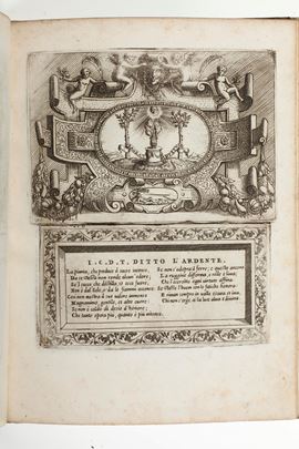 In 4°. Rilegatura in mezza pergamena del secolo XIX, titolo su tassello in oro al dorso. Bella raccolta di 71 tavole incise in rame, compreso il frontespizio (rifilato e applicato su carta). Piccoli strappetti, antichi restauri ma nel complesso esemplare fresco e marginoso.