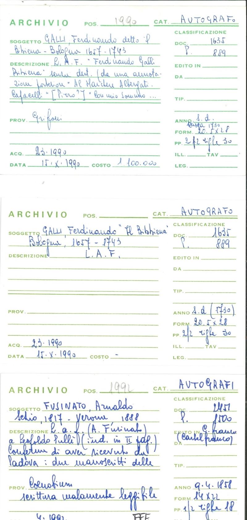 Due lettere autografe di argomento vario