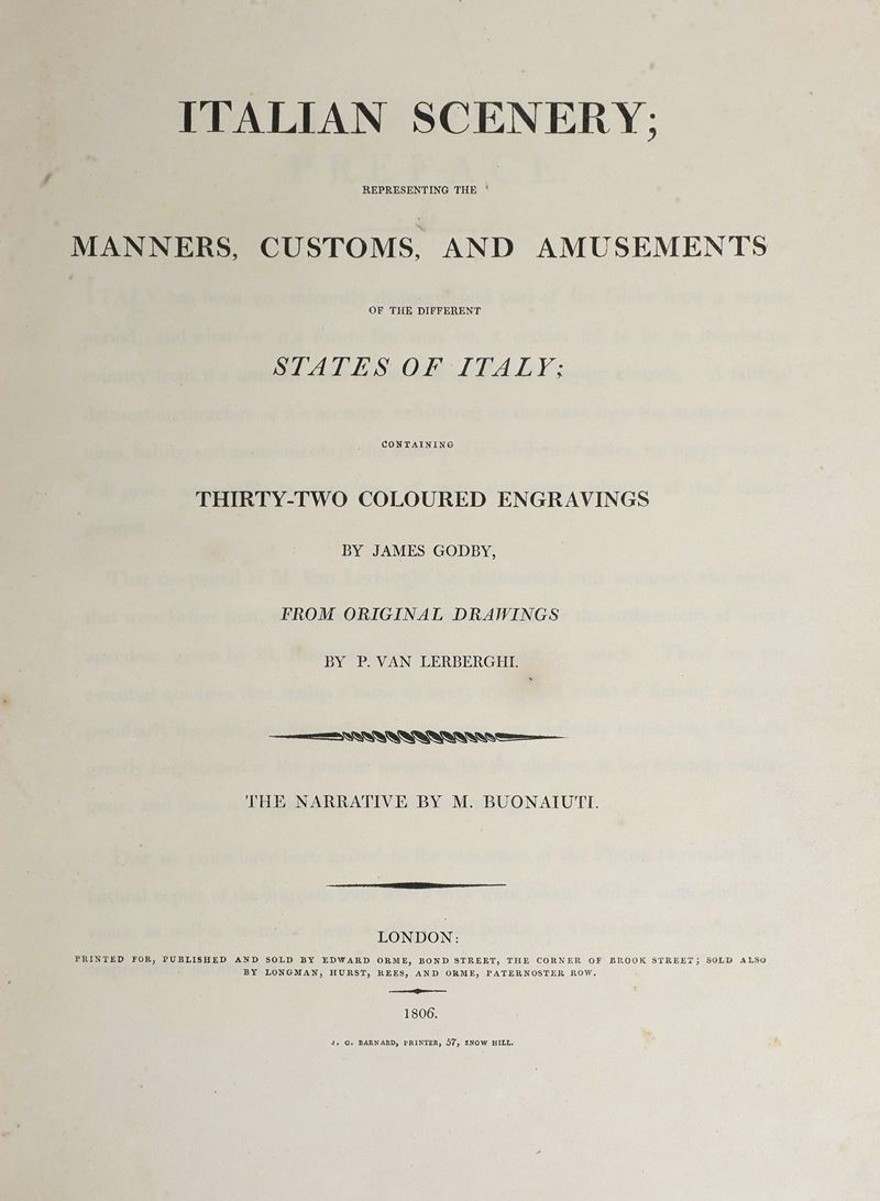 Godby James (1767–1849) / M. Buonaiuti Italian Scenery representing the manners, customs, and amusements of the different states of Italy