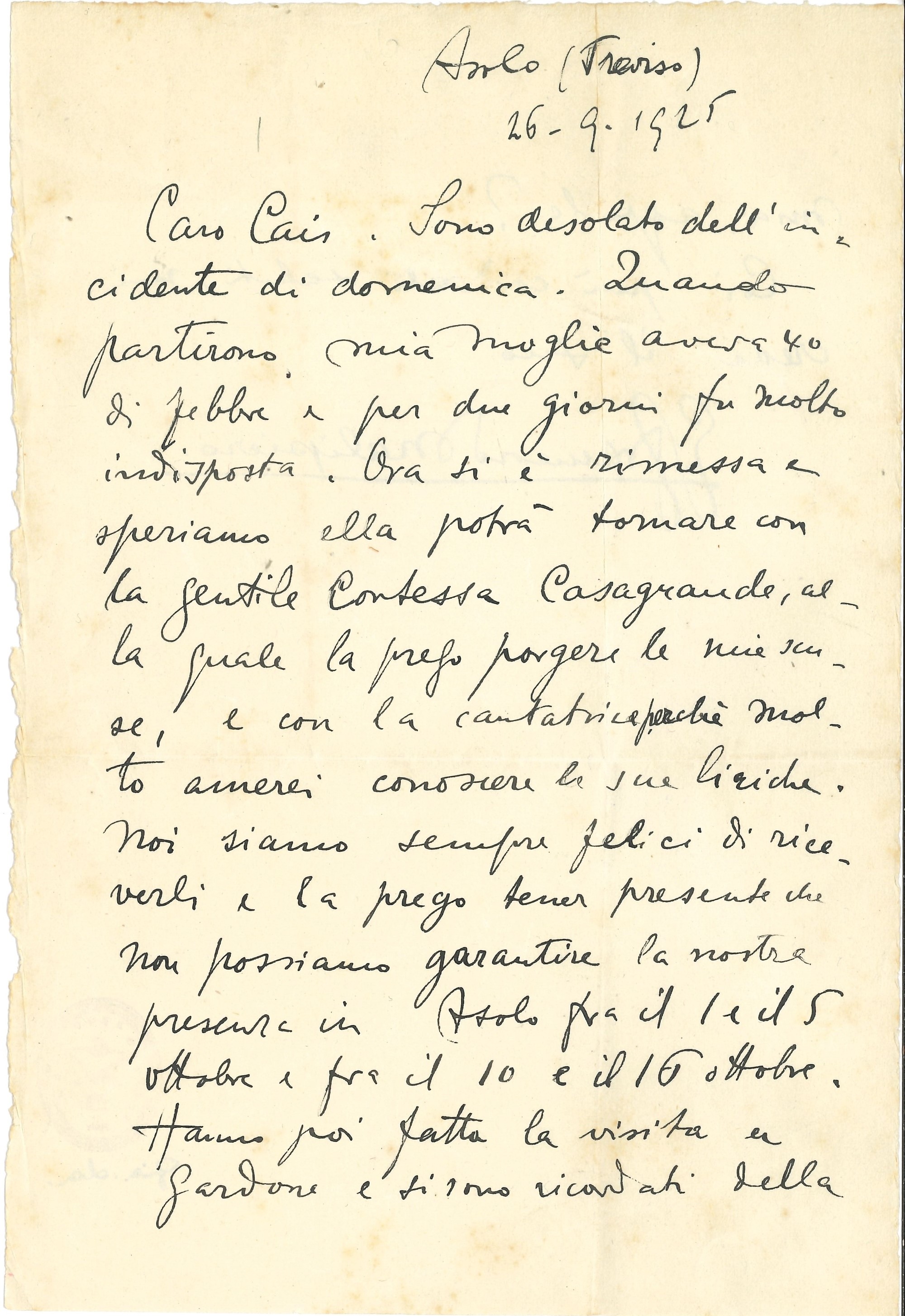 In evidenza tra gli altri Francesco Balilla Pratella, Gian Francesco Malipiero, Jules Massenet, Pietro Floridia, Alfredo Casella, Luigi Illica, Pablo Casals, Ildebrando Pizzetti, Ermanno Wolf Ferrari, Luigi Dallapiccola ed altri.