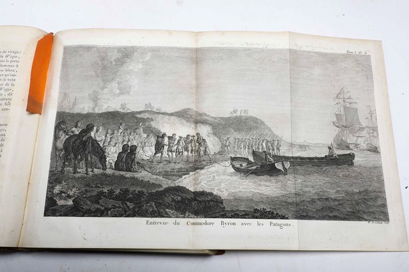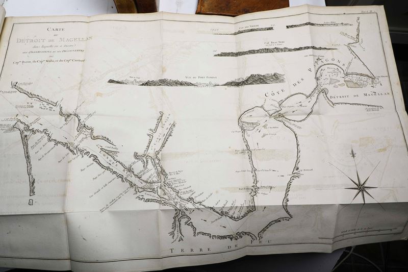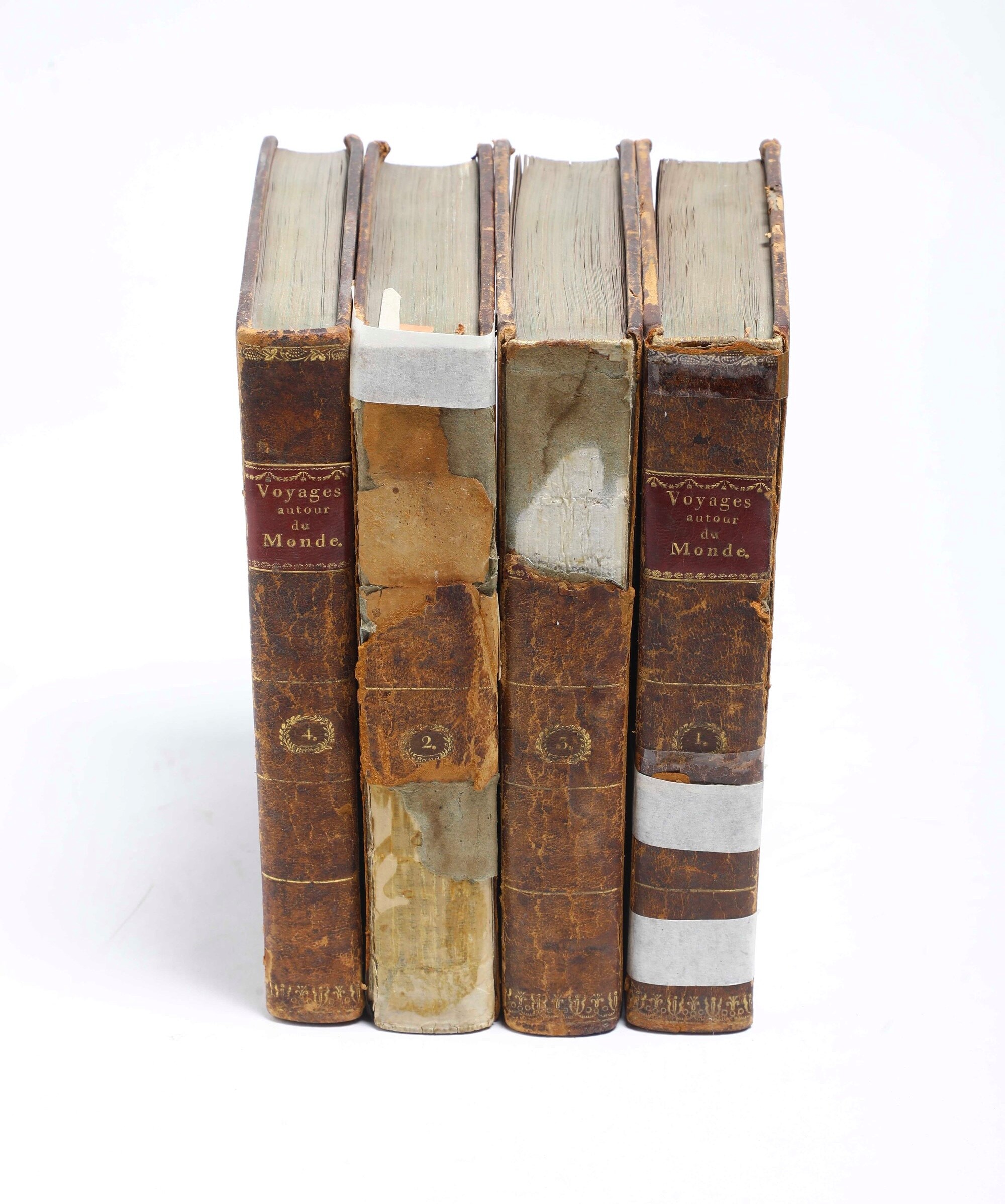 Otto voll. in quattro tomi in-4°. (mm 243x190). Rilegature in piena pelle del XIX secolo, tagli verdi (mancanze al dorso, rotture alle cuffie, usure). Numerose tavole a tutta pagine e ripiegate raffiguranti carte geografiche e vedute dei luoghi in cui si sono svolte le esplorazioni. Esemplare lievemente brunito ma con belle impressioni
