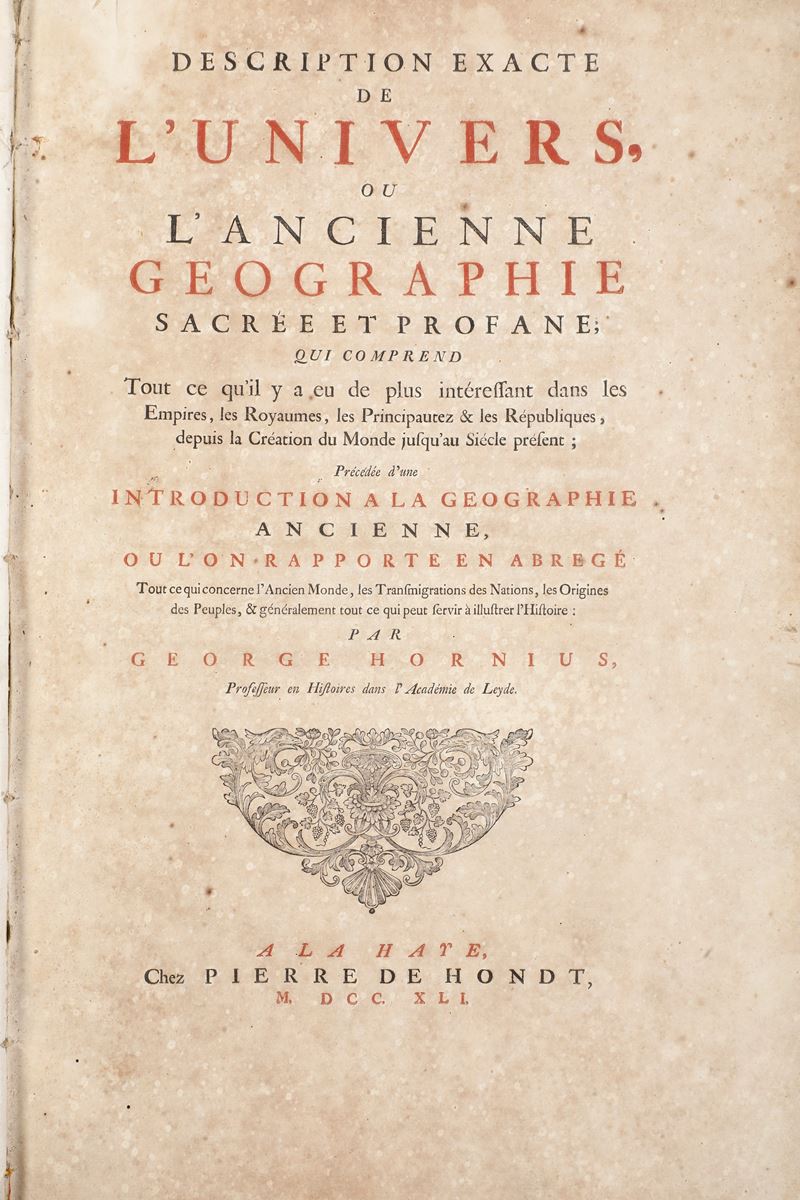 Hornius George (1620-1670) Description exacte de l’Univers ou l’anciènne géographie sacrée et Profane A La Haye, chez Pierre [..]