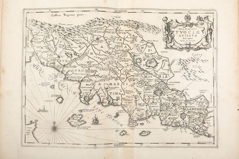 In-folio grande. (mm 495x318). Rilegatura coeva in piena pergamena rigida (usure). Cinquantatre belle carte geografiche, quasi tutte a doppia pagina. Esemplare ad ampi margini ma brunito, strappo riparato alla prima carta di guardia 11, pochi piccoli fori.