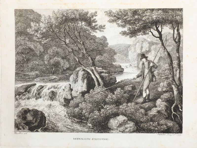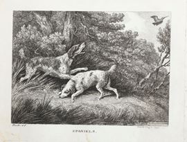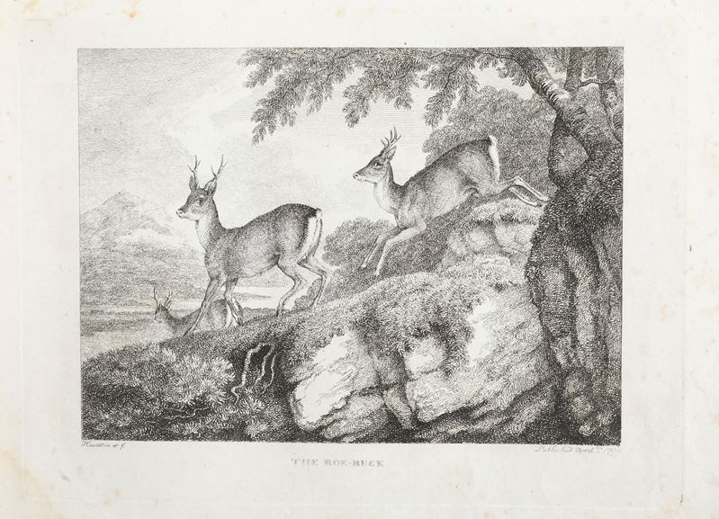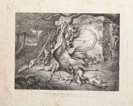 71 incisioni in rame compreso il frontespizio, perlopiù legate al mondo della caccia, esemplare che presenta fioriture, bella rilegatura in marocchino rosso a grana lunga. Ex libris nobiliare al contropiatto anteriore, leggera abrasione alla rilegatura