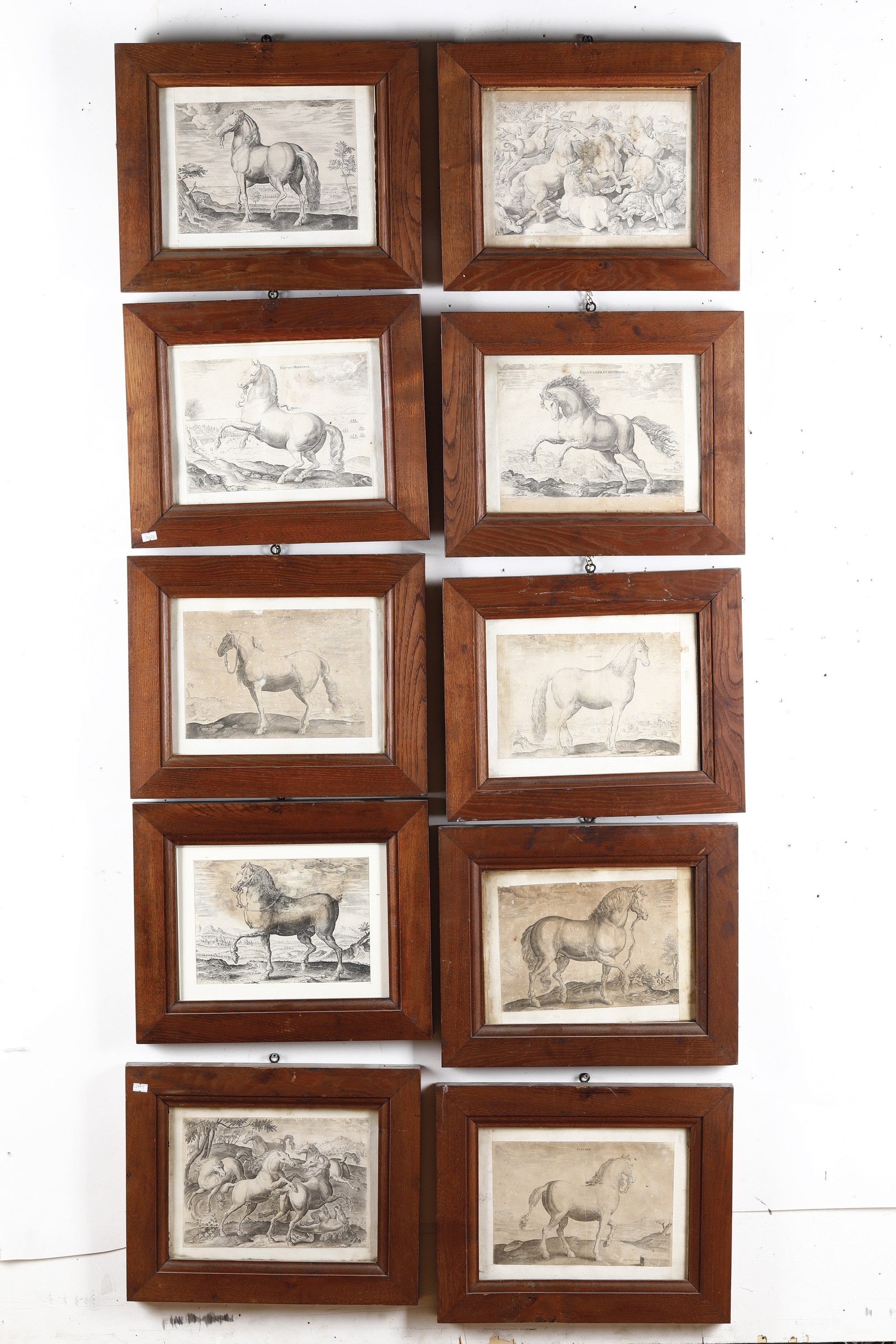 Ippologia-cavalli Dieci incisioni all'acquaforte e bulino raffiguranti cavalli di razze diverse tratte da soggetti di invenzione di Johan Strada