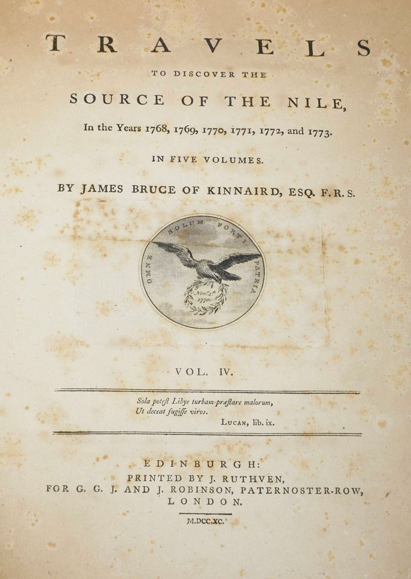 James Bruce (1730-1794) Travels to discover the source of the Nile Edinburgh, J. Ruthven for G.G.J. and J. Robinson, 1790 [..]