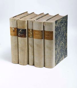 Cinque voll. n-4°. (mm ). Rilegatura in mezza pergamena del secolo XIX. Quinto volume con belle tavole della fauna e flora del Nilo, tre carte del territorio più volte ripiegate al termine. Qualche piccolo restauro ai margini, bruniture, alcune carte con foxing, antiporta del vol. III staccata.