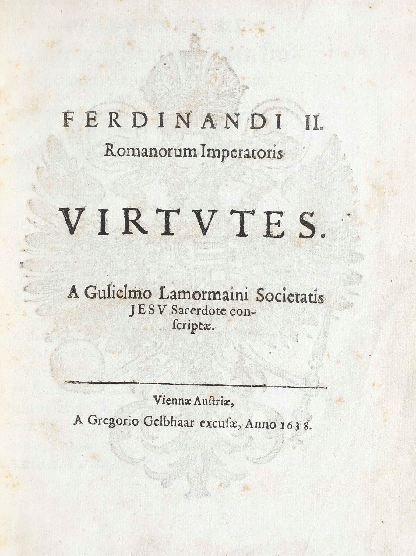 Lamormaini Gulielmo (1570-1648) Ferdinandi II Romanorum Imperatoris Virtutes Viennae Austriae, A Gregorio Gelbhaar excusae, [..]