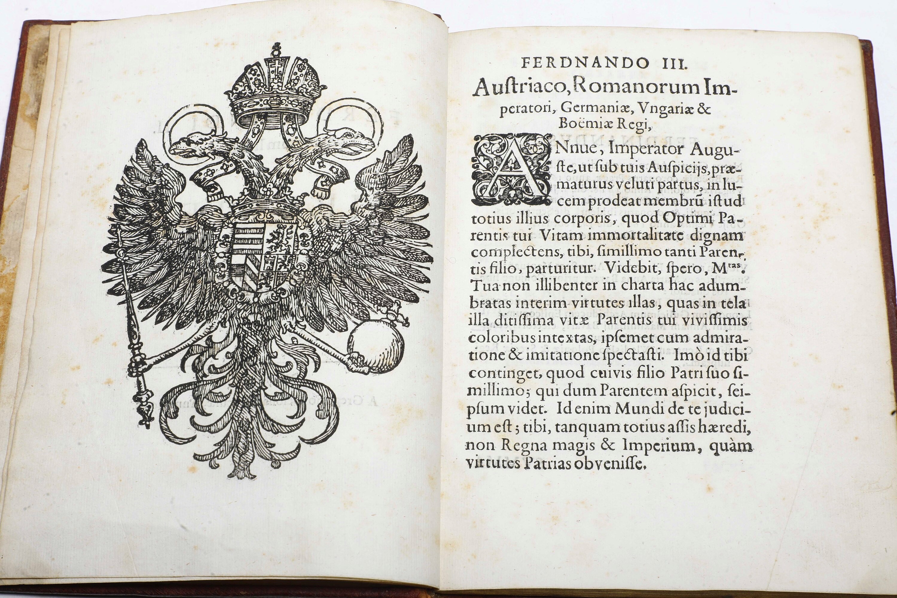In-4°. (mm 196x147). Rilegatura in piena pelle, armi medicee impresse in oro al centro dei piatti, tagli dorati. Stemma imperiale inciso a tutta pagina al retro del frobntespizio, iniziali e finalini xilografici. Esemplare fresco, con lieve foxing in alcune carte, una carta con due strappetti restaurati al bordo