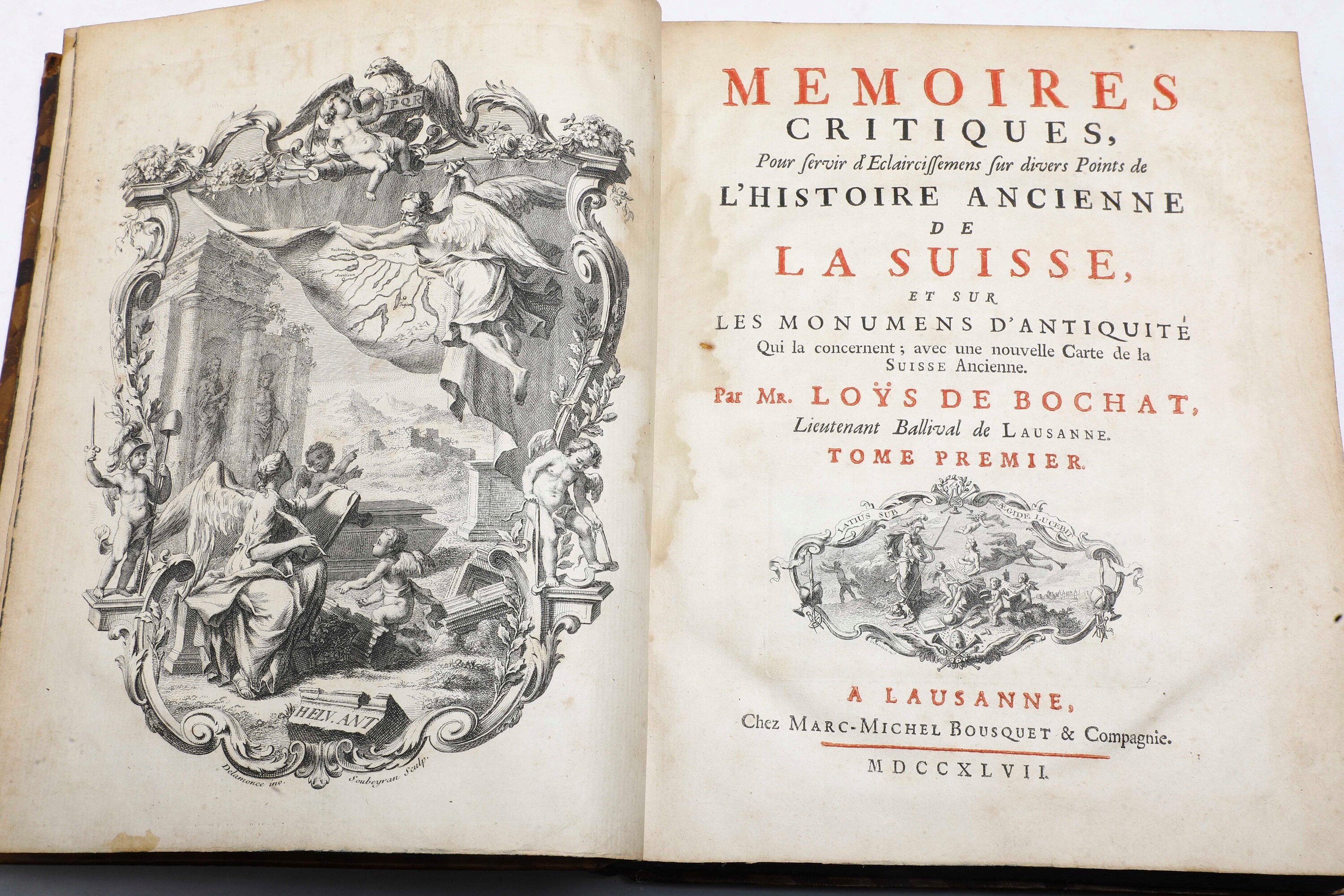Loys De Bochat Charles Guillaume (1695-1754) Memoires critiques pour servir d’eclaircissiment sur divers points de l’histoire dancienne de la Suisse... A Lausanne, Chez Mar Michelle Bousquet, 1747-1749