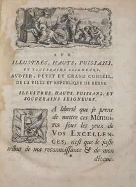 In-4°. Tre volumi. Rilegature coeve in piena pelle. Abrasioni e rotture a due cerniere. Antiporta incisa al primo volume che concerva anche la grande carta della Svizzera più volte ripiegata, stampata su carta forte.