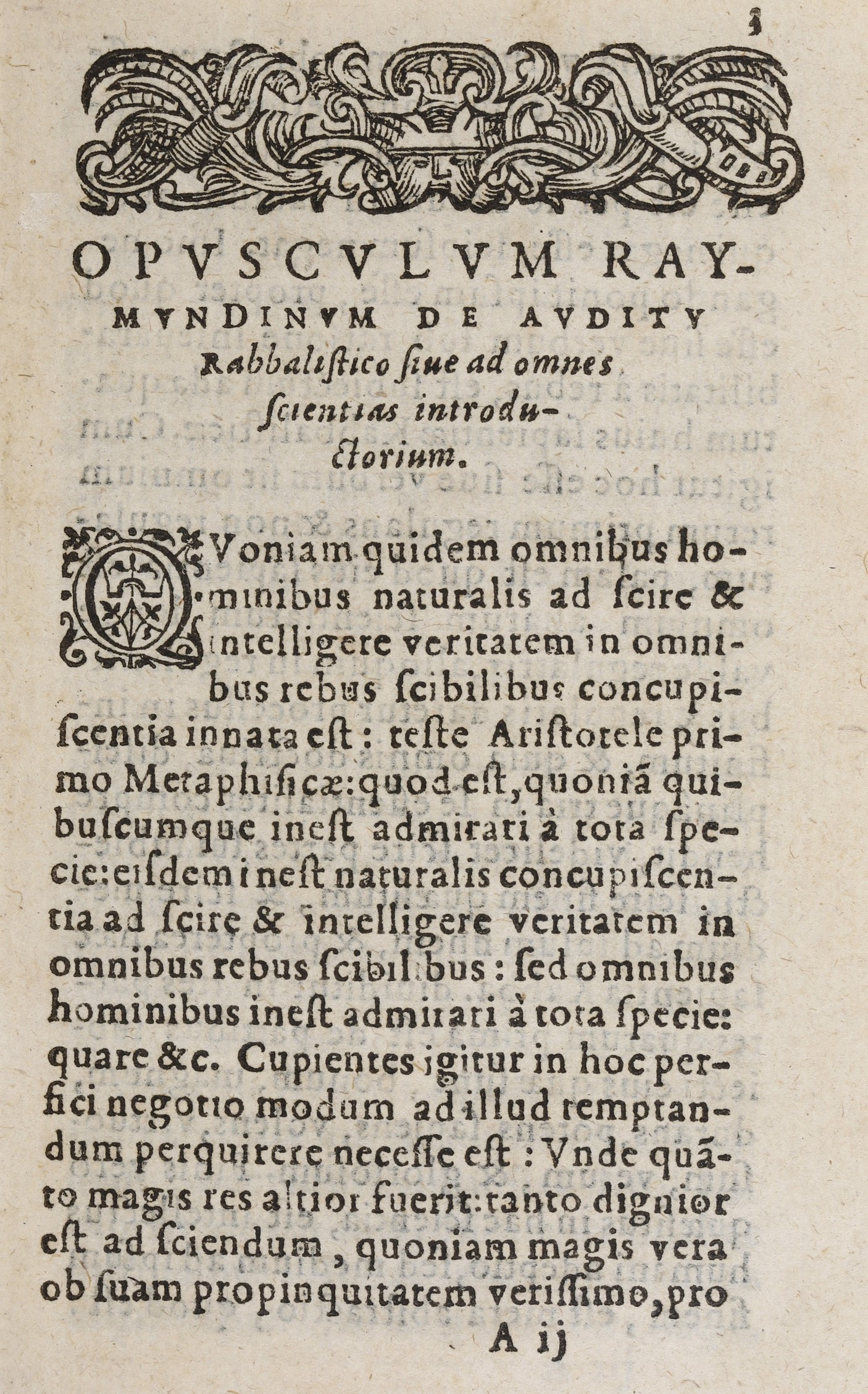Lullo Raimondo (1232–1316) - Bruno Giordano (1548–1600) Opusculum Raymundinum de auditu Kabbalistico sive ad omnes scientias [..]