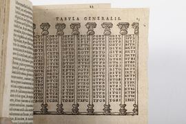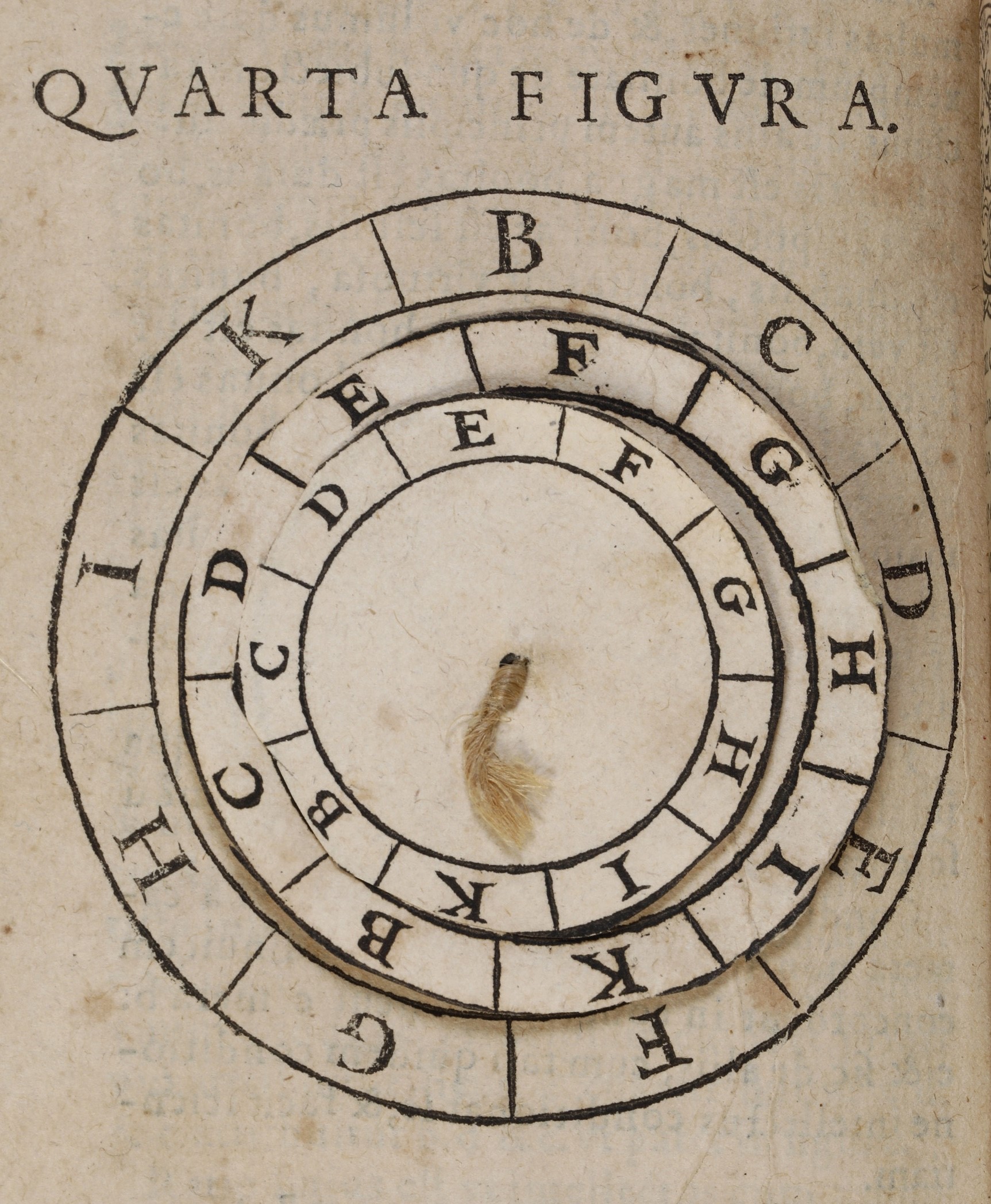 I. A-K 8 . 82 [cioè 80, omessi i numeri 63 e 66] carte. Sei tavole fuori testo, tra cui una piegata, e una con una volvella tra le carte B4 e B5.