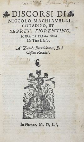 Macchiavelli Niccolò (1469-1527) Discorsi..sopra la prima deca di Tito Livio
