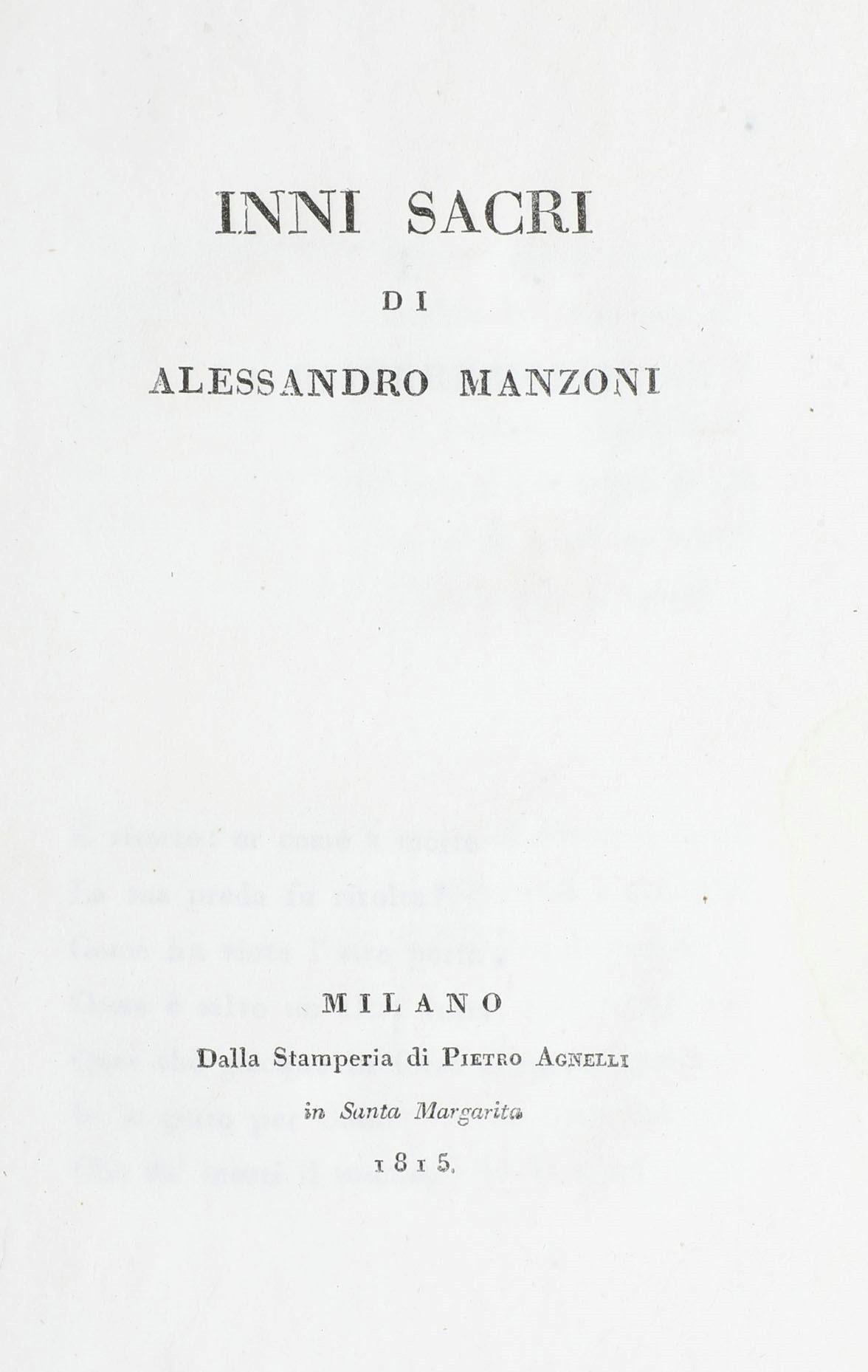 Manzoni Alessandro (1785-1873) Inni sacri... Milano dalla stamperia di Pietro Agnelli, 1815
