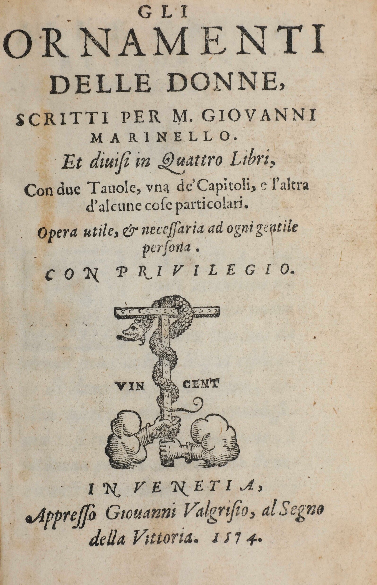 Marinello Giovanni Gli ornamenti delle donne In Venezia apresso Giovanni Valghisio, 1574