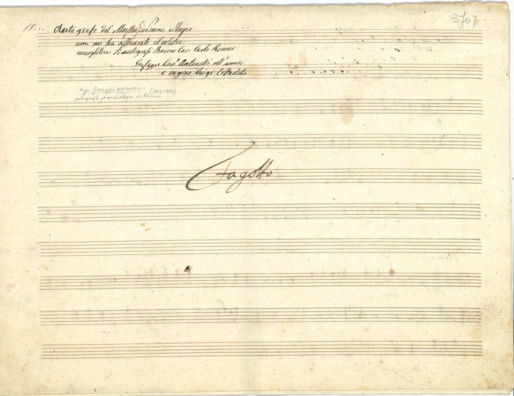 Partitura musicale autografa del maestro (trascrizione per fagotto)