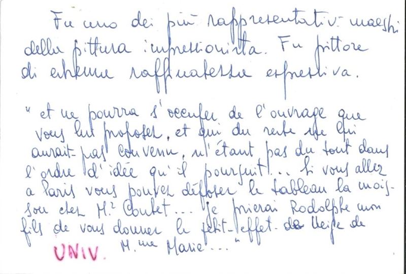 Lettera autografa indirizzata a Monsieur Doucet (Jacques Doucet 1853-1929?).