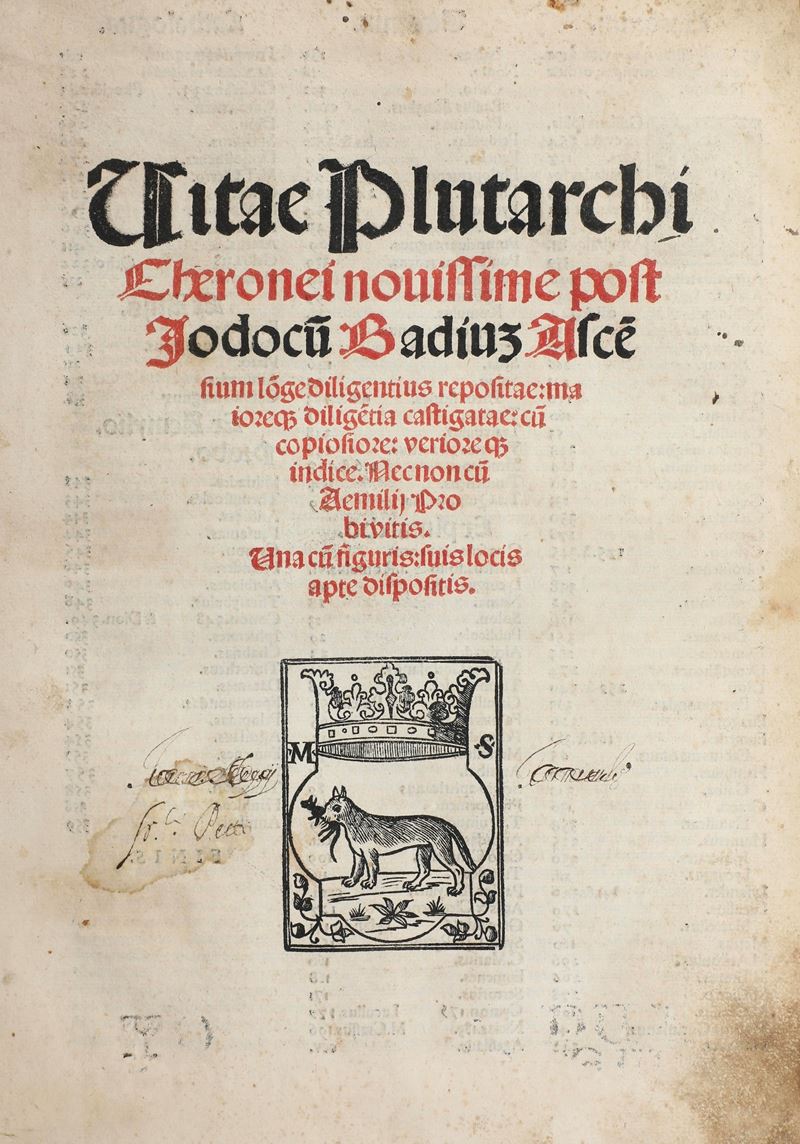 Plutarco (46 d.C.-125/127 d.C.) Vitae.. Venezia, Melchiore Sessam & Petru de Rauanis, 1516