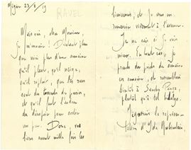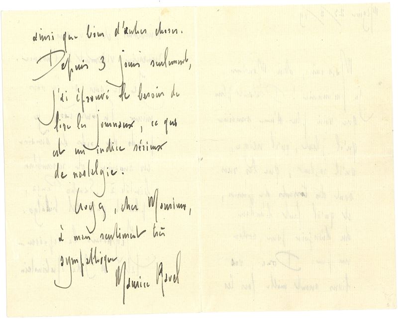 Ravel Maurice (1875-1937) Lettera autografa da Mégéve