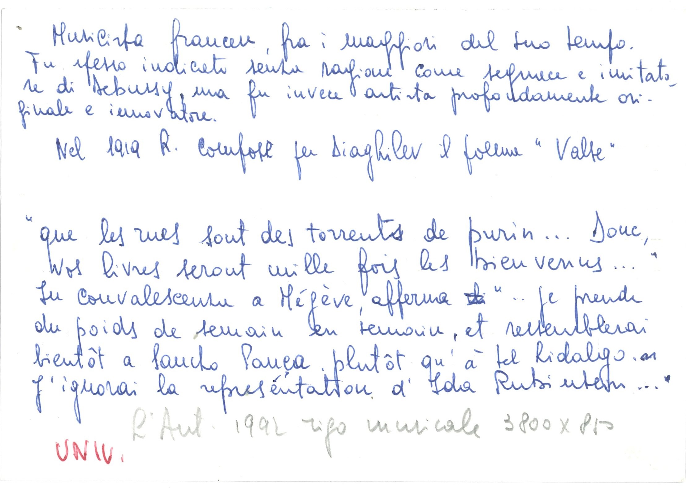 Documento datato 23-02-1919. Tre facciate manoscritte. Il compositore parla del proprio soggiorno nella località montana francese
