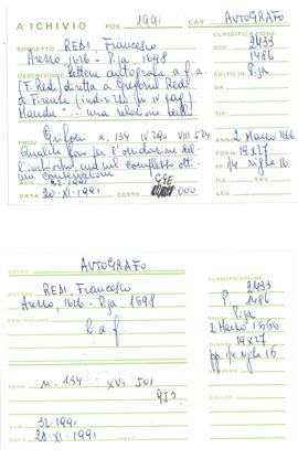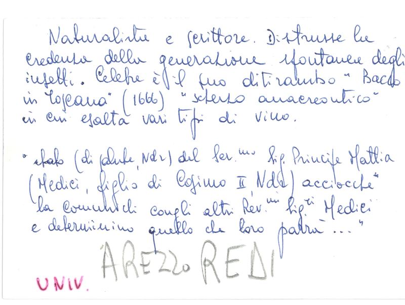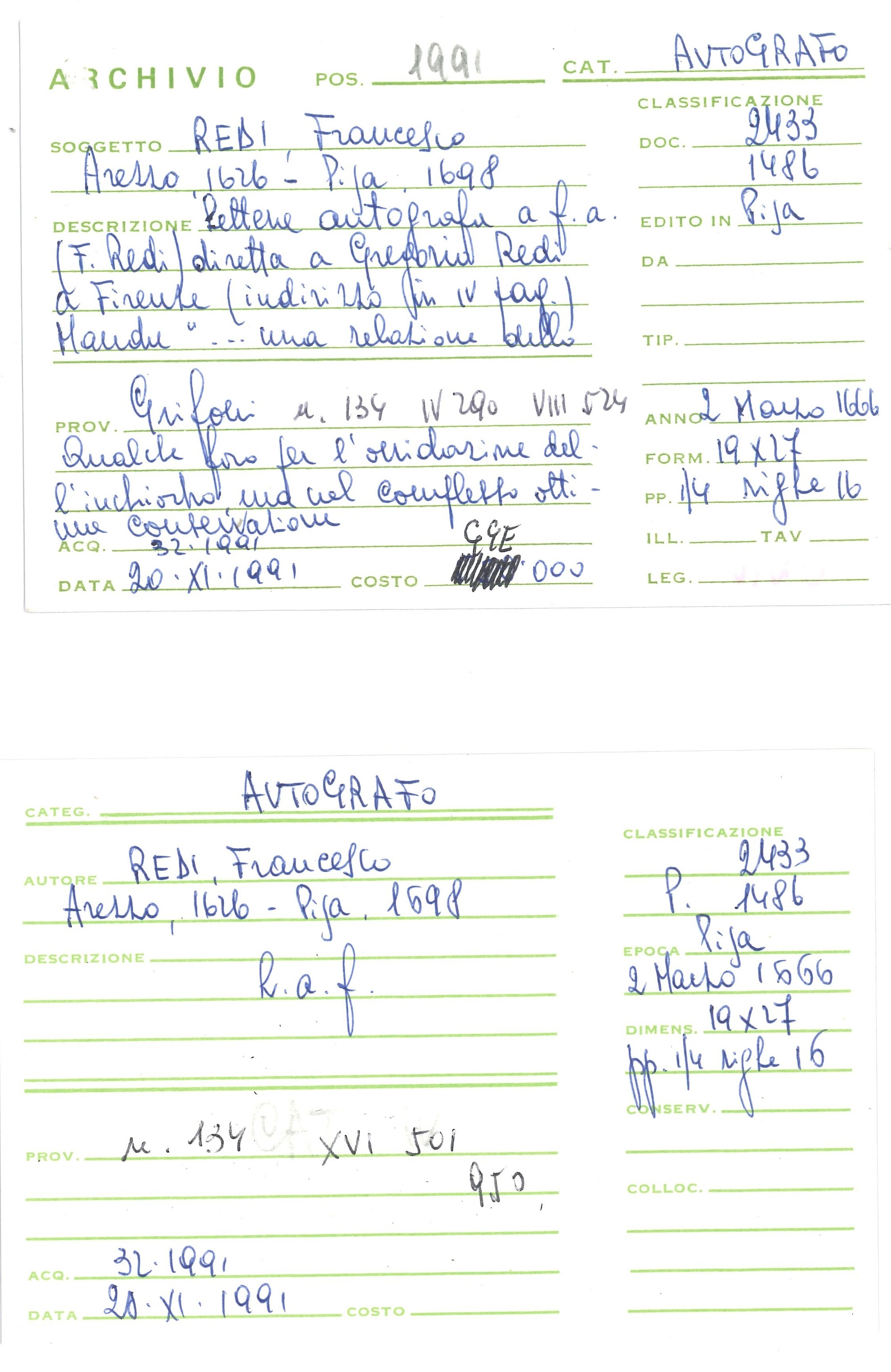 Redi Francesco (1626-1698) Lettera autografa indirizzata a Gregorio Redi