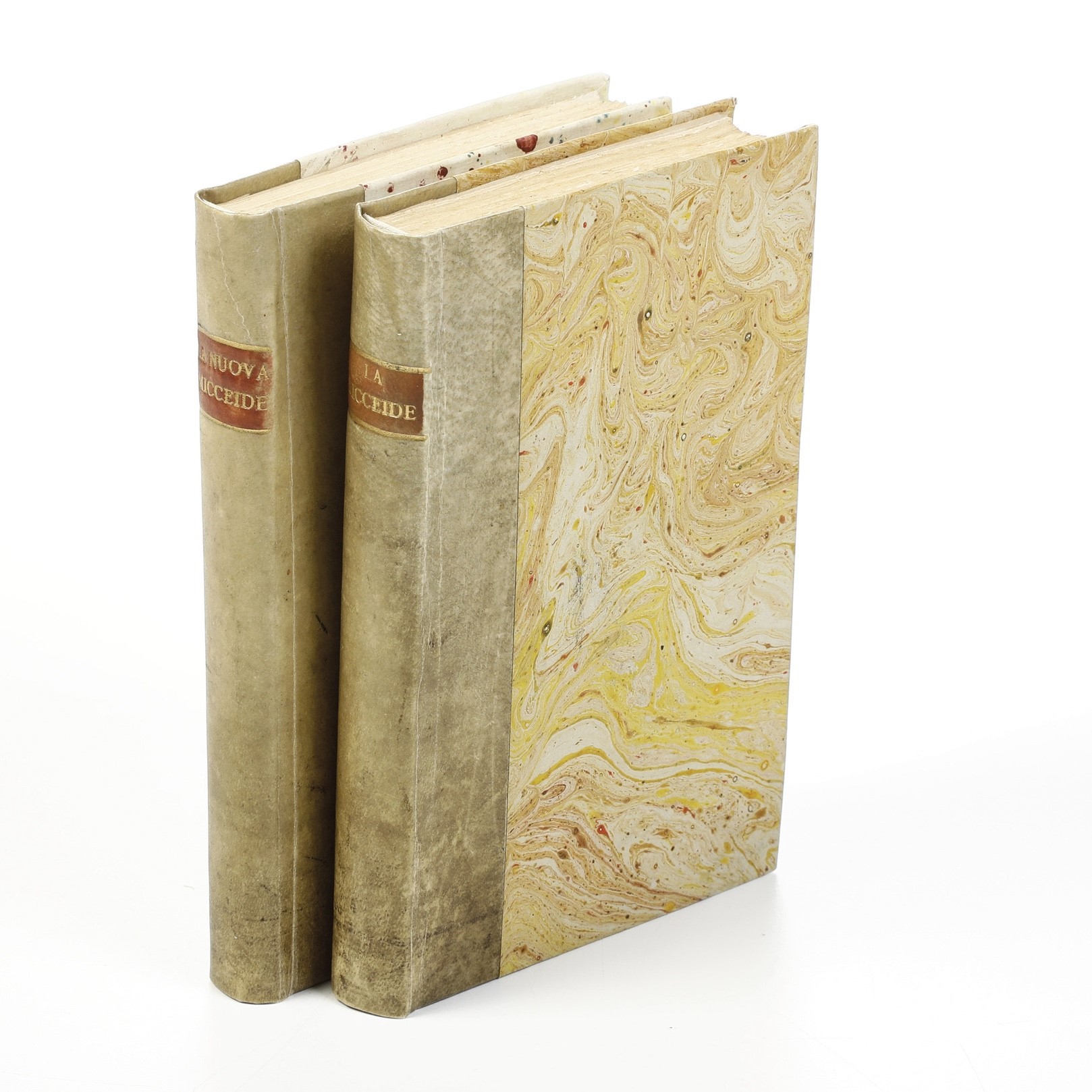 In-8°. Rilegature in mezza pergamena del secolo XX. Due belle e rare edizioni dedicate ai nostri amici felini, buoni esemplari in barbe, ex libris manoscritto al piede della prima opera