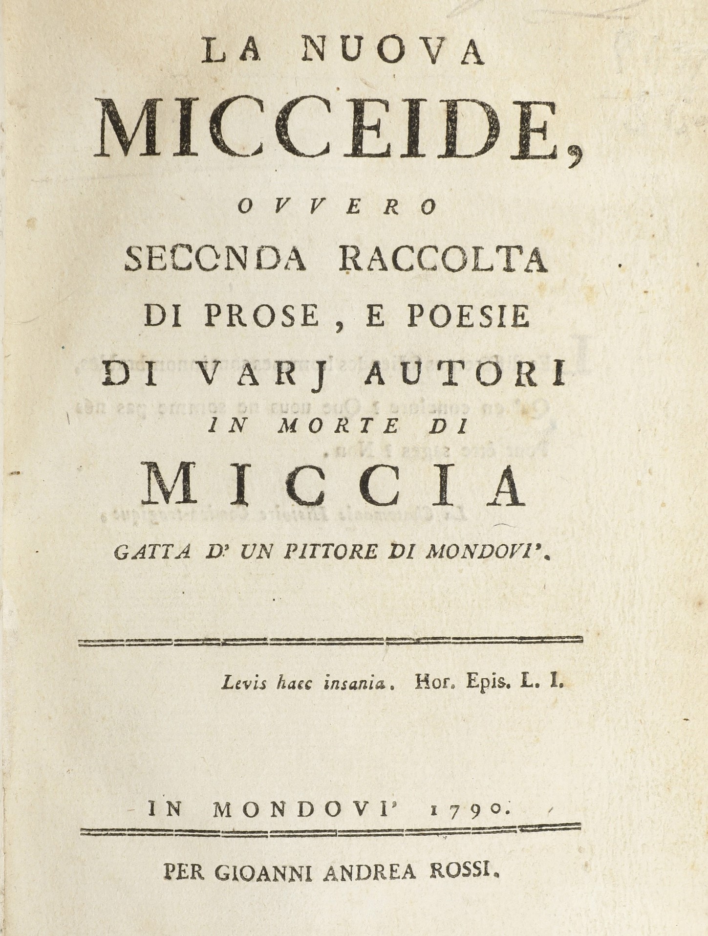 Regis Gian Francesco - La Micceide In Mondovì, per li fratelli Rossi, 1781 - La Nuova Micceide.. In Mondovì, Per Giovanni [..]