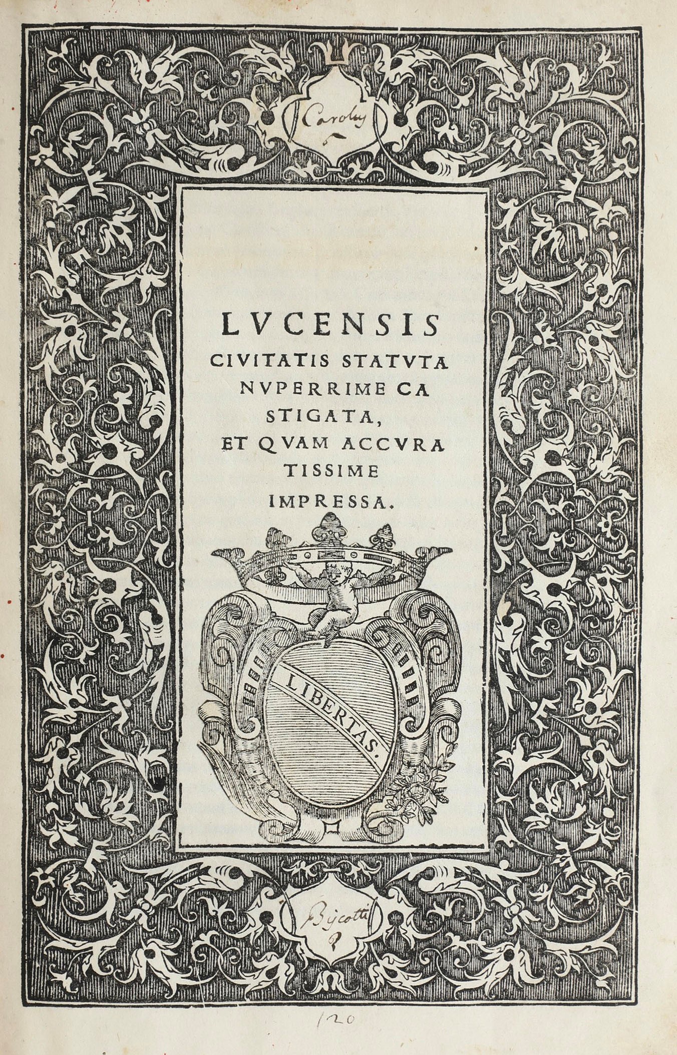 Statuti - Lucca Lucensis civitatis statuta nuperrime castigata, et quam accuratissime impressa... Lucca,Ioannen Baptista [..]