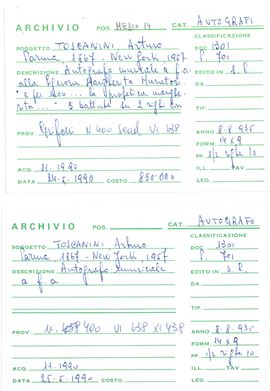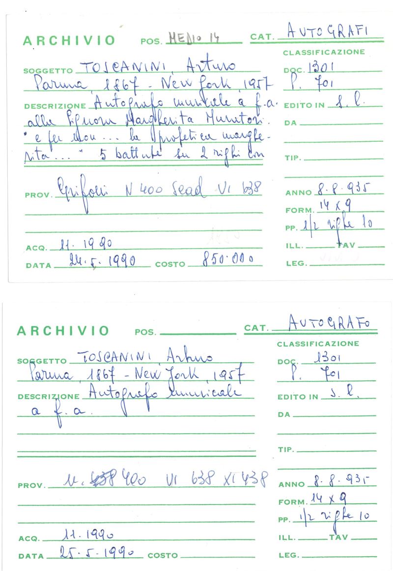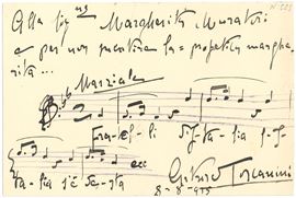 Toscanini Arturo (1867-1957) Autografo musicale con dedica alla Signorina Margherita Muratori