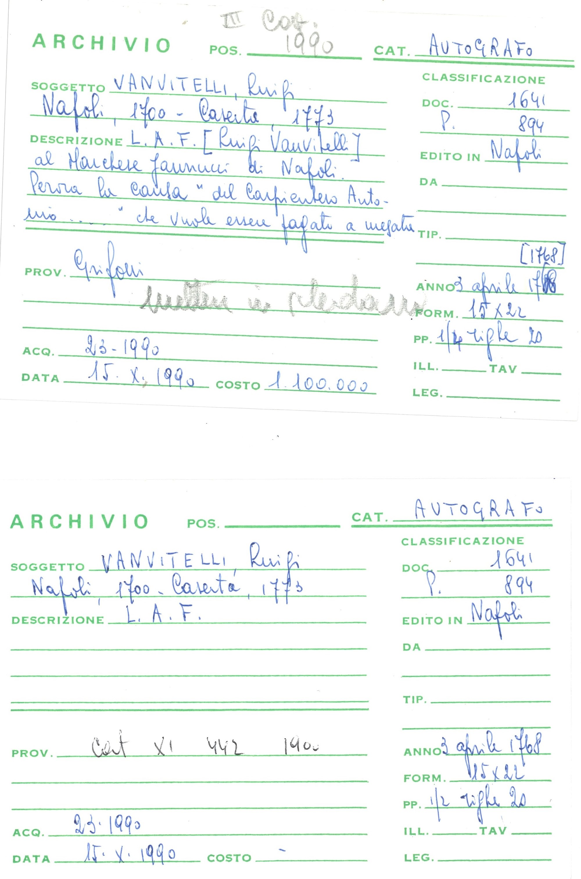 Van Wittel Luigi detto Vanvitelli (1700-1773) Lettera autografa al marchese Tanucci