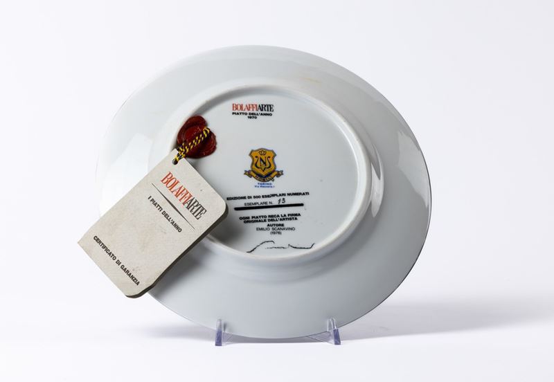 dalla serie Piatti dell'anno 1970 a cura di Bolaffiarte con certificato di garanzia e timbro a ceralacca al retro