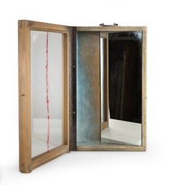 scultura in legno, vetro e tecnica mista