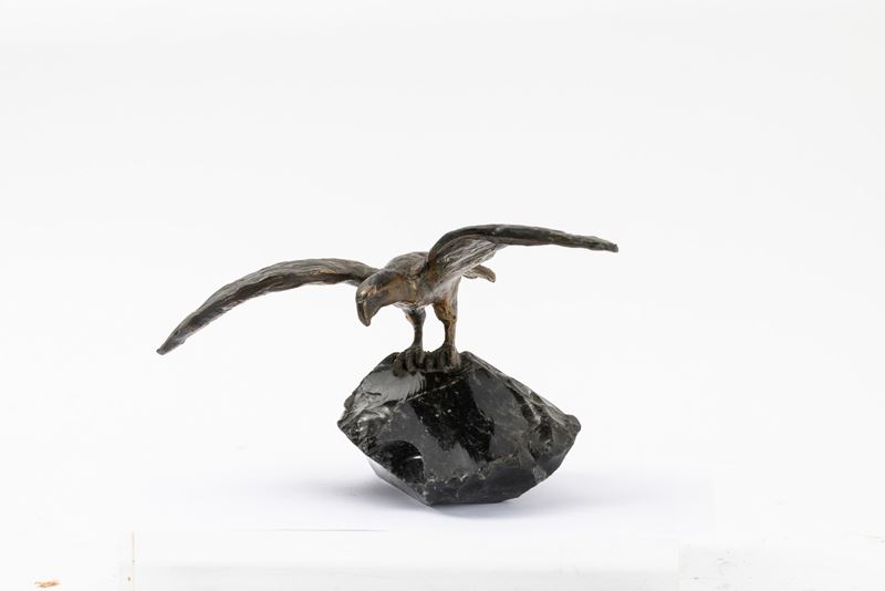 il lotto è accompagnato da due sculture in bronzo di dimensioni cm 18,5x19x9 e 13x23,5x17