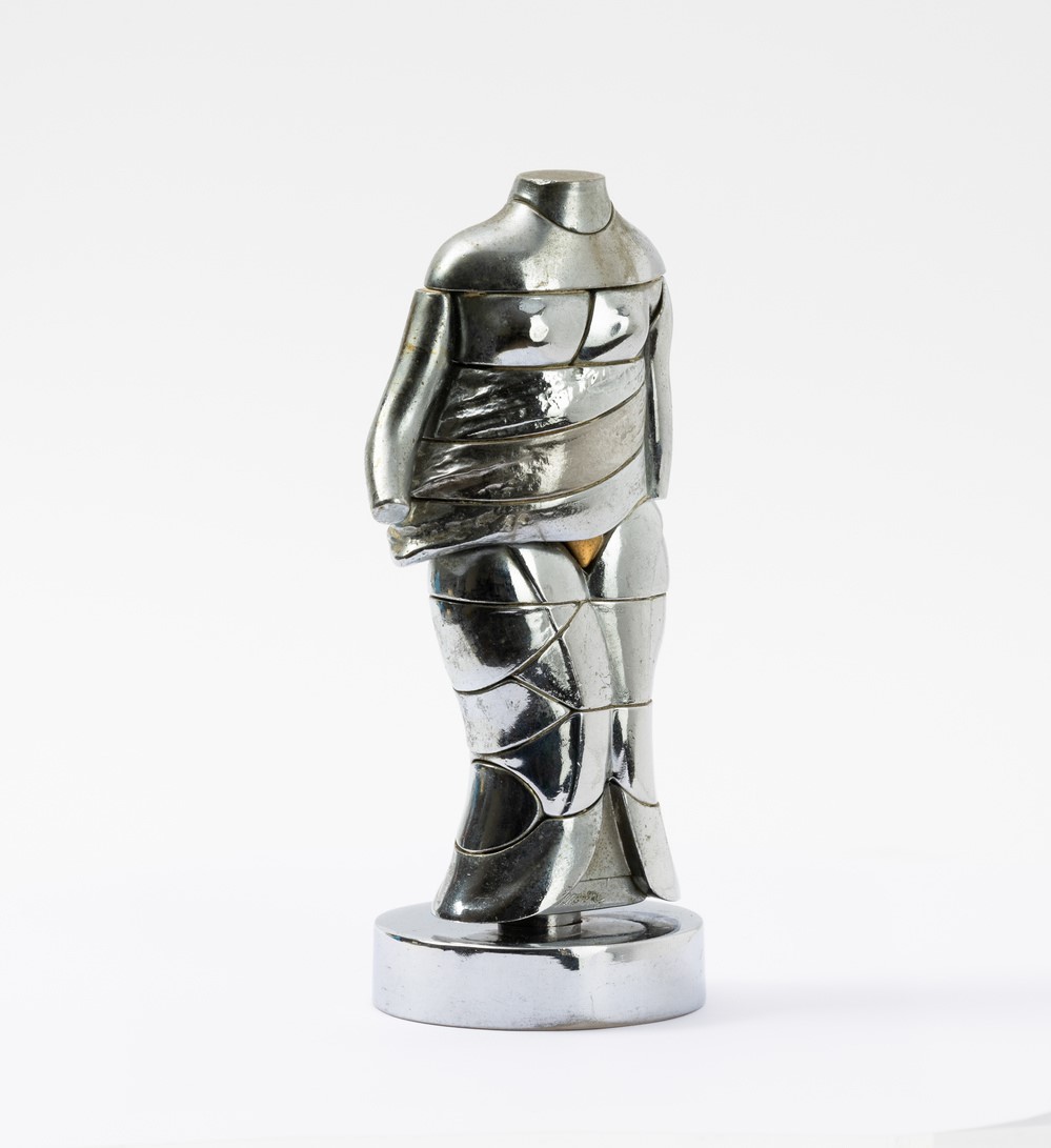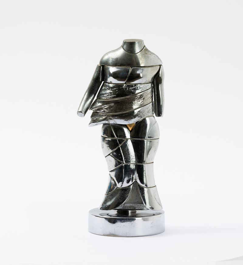 scultura in metallo cromato